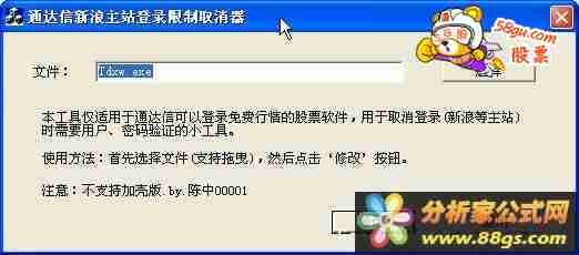 通达信新浪主站登录限制取消器 通达信官方更新越来越频繁,无力跟上其步伐,可能有朋友只需要开启简单功能,特做此小工具,方便diy。(程序中包含以前的周期快捷键修改小工具)