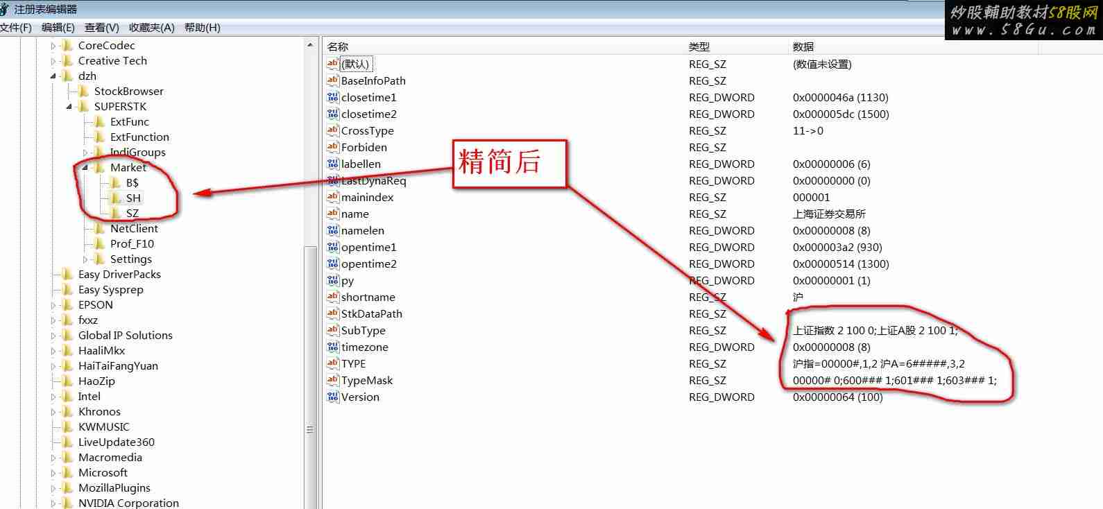 分享自用的只留A股注册表及实用精简cfg 本人一直用大智慧,且只看A股,别的不看,所以一直追求精简大智慧,期间参考查询了许多前辈的精简方法,由于大智慧不断更新,一些精简方法经常失效,时常被自动更新恢复所折磨,最近为适应大智慧版本的更新,经过摸索试验,感觉下面我上传的搭配相对达到我的满意,为了节省和我一样想法的同学的时间,现传上我用时间换来的注册表和CFG文件,供同学们参阅! 说明: 1.我用的是新游客老师的1017主程序,其它主程序下不敢保证不会自动恢复默认注册表; 2.更新前要备份自己的注册表和cfg文件夹,以防万一; 速度就是金钱,需要的话精简一下吧!
