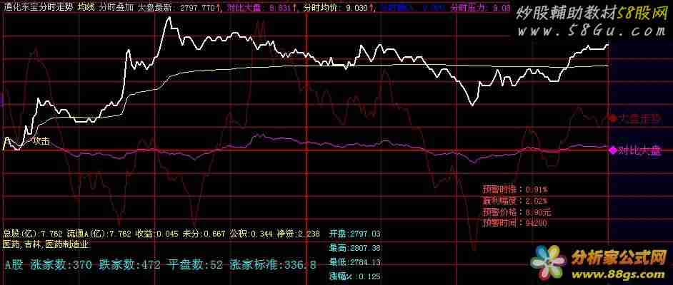 最近想把我的很多指标发到论坛,因为我知道大盘将要发动一轮大行情,我们都会很开心!为了让大家尽量赚得多一些,发一些指标供大家参考。慢慢来,先发一些小不点,越到后面越激动,今发分时叠加大盘行情,个股大盘强弱对比,有两个指标,全部引入软件,“001”是引用指标,我们要用的是“分时叠加”,图中信号无未来!   {点击看本软件截图: 58股票 公式网 http://www. 58gu. com 整理} |