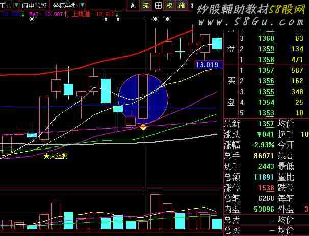 {挖坑藏金}A1:=C/REF(C,1)>1.07 AND C/O>1.03;A2:=REF(C,3)<REF(O,3) AND REF(C,3)/REF(C,4)<0.96 AND REF(C,2)/REF(C,3)<1.02 AND REF(C,1)/REF(C,2)<1.02 AND C/REF(C,1)>1.041 AND C>O;A3:=MAX(REF(C,1),REF(O,1))/MIN(REF(C,1),REF(O,1))<1.02 AND MAX(REF(C,2),REF(O,2))/MIN(REF(C,2),REF(O,2))<1.02;A4:=MA(C,5)>MA(C,20);XG:COUNT(REF(A1,1),15) AND A2 AND A3 AND A4;    |