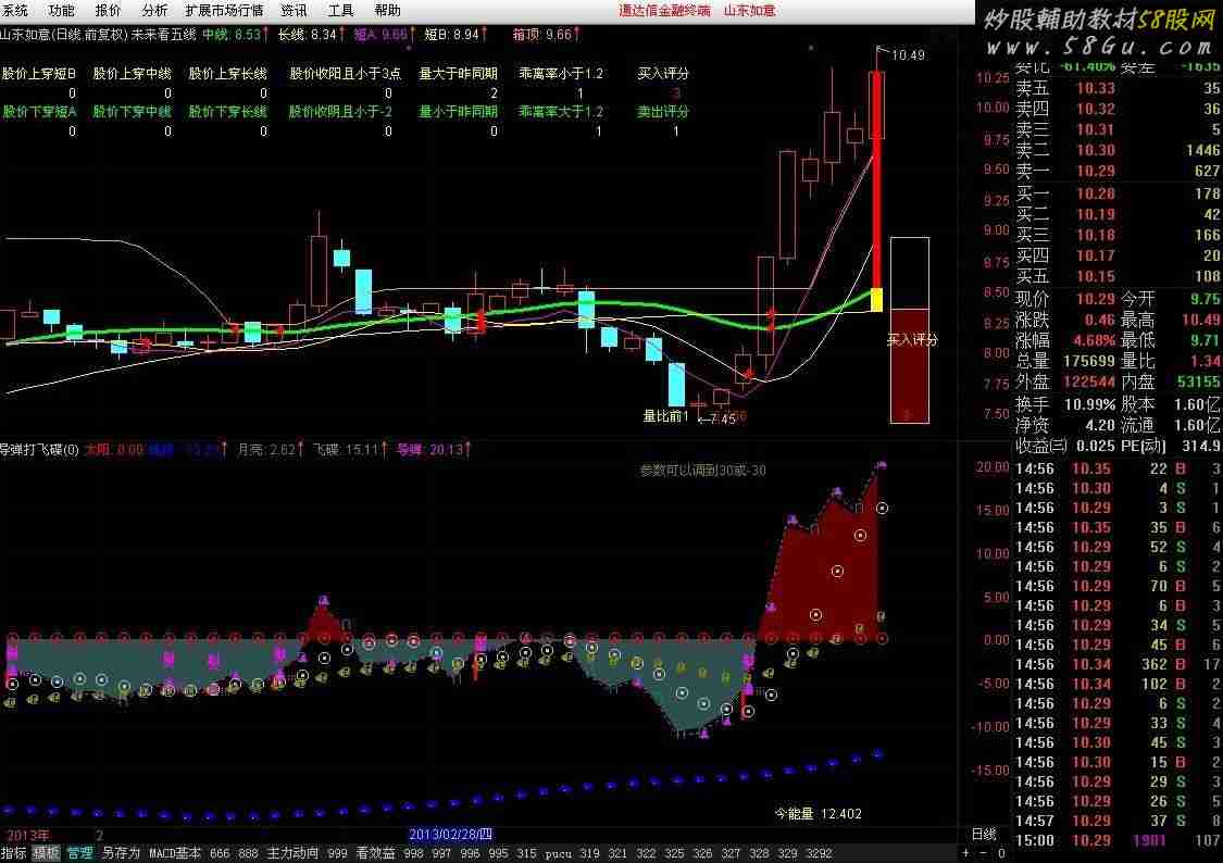RMB:=IF(DYNAINFO(37)>3,2/3,1/3)*AMOUNT; ZLL:=IF(DYNAINFO(37)>3,2*V/3,V/3)*100; CCB:=RMB/ZLL; CCB10:=SMA(CCB,10,1); CCB60:=SMA(CCB,60,1); LCCB:=MA(CCB60,240); 现价:=C; 太阳:0,NODRAW,COLORRED; 地球:MA(CCB,60)/LCCB*100-100,COLORBLUE,CIRCLEDOT; 月亮:CCB10/CCB60*100-100,COLORBROWN,CIRCLEDOT; 飞碟:MA(C,5)/CCB60*100-100,NODRAW,COLORGRAY; 导弹:C/CCB60*100-100,COLORMAGENTA,DOTLINE; DRAWBAND(N,RGB(47,79,79),导弹*0.95,99); 发射:STICKLINE(CROSS(导弹,飞碟),REF(导弹,1),导弹,0.001,0),COLORRED; DRAWTEXT(发射,导弹*1.02,'▲...'),COLORMAGENTA; DRAWTEXT(发射,导弹*0.99,'▲...'),COLORMAGENTA; DRAWTEXT(发射,导弹*0.95,'▲...'),COLORMAGENTA; DRAWTEXT(发射,导弹*0.90,'▲...'),COLORMAGENTA; DRAWTEXT(发射,导弹*0.50,'发'),COLORMAGENTA; DRAWTEXT(发射,导弹*0.40,'射'),COLORMAGENTA; DRAWTEXT(导弹>REF(导弹,1),导弹*1.02,'▲'),COLORMAGENTA; DRAWTEXT(1,飞碟,'⊙'),COLORLIGRAY; DRAWTEXT(1,太阳,'⊙'),COLORRED; DRAWTEXT(1,地球,'●'),COLORBLUE; DRAWTEXT(1,月亮,'@'),COLORBROWN; DRAWTEXT(1,导弹,'∩'),COLORLICYAN; DRAWTEXT_FIX(1,0.8,0.001,1,'参数可以调到30或-30'),COLORBROWN; LL:=(C-O)*V/10000; 能量:=LL/REF(LL,1)*FROMOPEN/240; DRAWTEXT_FIX(1,0.85,0.95,1,'今能量'),COLORYELLOW; DRAWNUMBER_FIX(CURRBARSCOUNT=1,0.90,0.95,1,ABS(能量)),COLORYELLOW; |