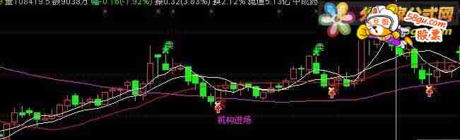 VAR3:=LLV(HIGH,240); VAR4:=100*(CLOSE-VAR3)/VAR3; VAR5:=(CLOSE-LLV(LOW,528))/(HHV(HIGH,528)-LLV(LOW,528))*100; VAR6:=(CLOSE-LLV(CLOSE,530))/(HHV(CLOSE,530)-LLV(CLOSE,530))*100; VAR7:=0; VAR8:=SMA(MAX(CLOSE-REF(CLOSE,1),0),34,1)/SMA(ABS(CLOSE-REF(CLOSE,1)),7,1)*100; VAR9:=SMA(MAX(CLOSE-REF(CLOSE,1),0),13,1)/SMA(ABS(CLOSE-REF(CLOSE,1)),13,1)*100; VAR10:=IF(TROUGHBARS(3,16,1)=0 AND HIGH>LOW+0.04,4,0); VAR11:=ZIG(3,6)>REF(ZIG(3,6),1) AND REF(ZIG(3,6),1)<=REF(ZIG(3,6),2) AND REF(ZIG(3,6),2)<=REF(ZIG(3,6),3); VAR12:=ZIG(3,6)<REF(ZIG(3,6),1) AND REF(ZIG(3,6),1)>=REF(ZIG(3,6),2) AND REF(ZIG(3,6),2)>=REF(ZIG(3,6),3); VAR13:=ZIG(3,22)>REF(ZIG(3,22),1) AND REF(ZIG(3,22),1)<=REF(ZIG(3,22),2) AND REF(ZIG(3,22),2)<=REF(ZIG(3,22),3); VAR14:=ZIG(3,22)<REF(ZIG(3,22),1) AND REF(ZIG(3,22),1)>=REF(ZIG(3,22),2) AND REF(ZIG(3,22),2)>=REF(ZIG(3,22),3); VAR15:=ZIG(3,51)>REF(ZIG(3,51),1) AND REF(ZIG(3,51),1)<=REF(ZIG(3,51),2) AND REF(ZIG(3,51),2)<=REF(ZIG(3,51),3); VAR16:=ZIG(3,51)<REF(ZIG(3,51),1) AND REF(ZIG(3,51),1)>=REF(ZIG(3,51),2) AND REF(ZIG(3,51),2)>=REF(ZIG(3,51),3); VAR17:=ZIG(3,72)>REF(ZIG(3,72),1) AND REF(ZIG(3,72),1)<=REF(ZIG(3,72),2) AND REF(ZIG(3,72),2)<=REF(ZIG(3,72),3); VAR18:=ZIG(3,72)<REF(ZIG(3,72),1) AND REF(ZIG(3,72),1)>=REF(ZIG(3,72),2) AND REF(ZIG(3,72),2)>=REF(ZIG(3,72),3); VAR19:=EMA(CLOSE,2)-EMA(CLOSE,150); 买1:=VAR10; 买2:=(VAR11+VAR13+VAR15+VAR17); 卖1:=(VAR12+VAR14+VAR16+VAR18); B:IF(买1>0 OR 买2>0,LOW*0.99,DRAWNULL),CROSSDOT,LINETHICK3,COLORYELLOW; DRAWTEXT(买1>0 OR 买2>0,LOW*0.99,'买'),COLORRED; S:IF(卖1>0,HIGH*1.01,DRAWNULL),CROSSDOT,LINETHICK3,COLORGREEN; DRAWTEXT(卖1>0,HIGH*1.02,'卖'),COLORGREEN; DRAWICON((ZIG(3,5)>REF(ZIG(3,5),1)) AND (REF(ZIG(3,5),1)<=REF(ZIG(3,5),2)) AND (REF(ZIG(3,5),2)<=REF(ZIG(3,5),3)),LOW*0.98,1) ; DRAWICON((ZIG(3,5)<REF(ZIG(3,5),1)) AND (REF(ZIG(3,5),1)>=REF(ZIG(3,5),2)) AND (REF(ZIG(3,5),2)>=REF(ZIG(3,5),3)),HIGH*1.01,2); ZB:=EMA(EMA(VAR3,5),5)*3, COLORSTICK; VARA:=IF(VAR9 AND CROSS(MA(CLOSE,3),MA(CLOSE,5)),20,0); K:=EMA(VAR7,5)*2, , COLORFF00FF; D:=EMA(K,5), , COLORWHITE; J:=K*3-D*2, ,COLORYELLOW; VARB:=BETWEEN(CLOSE,MA(CLOSE,3),MA(CLOSE,5)) AND J>10; HS:=VOL/CAPITAL*100, , COLORGREEN; VARE:=MA(100*(CLOSE-LLV(CLOSE,34))/(HHV(HIGH,34)-LLV(LOW,34)),5)-20; VARF:=100-3*SMA((CLOSE-LLV(LOW,75))/(HHV(HIGH,75)-LLV(LOW,75))*100,20,1)+2*SMA(SMA((CLOSE-LLV(LOW,75))/(HHV(HIGH,75)-LLV(LOW,75))*100,20,1),15,1); DRAWTEXT(VAR11 AND COUNT(VAR11,30)=1,LOW*0.95,'机构进场'),LINETHICK1,COLORFF00FF; VAR1A:=IF(VARE>0,VARE,0); VAR1B:=IF(VAR14>=200 AND VAR13>=150,15,IF(VAR14<=-200 AND VAR13<=-150,-15,VAR16))+60; VAR1C:=VAR1A>48 AND VAR1B>60 AND VAR19<100; DRAWTEXT(VAR1C AND COUNT(VAR1C,30)=1,LOW*0.95,'大顶(底)') COLORWHITE;