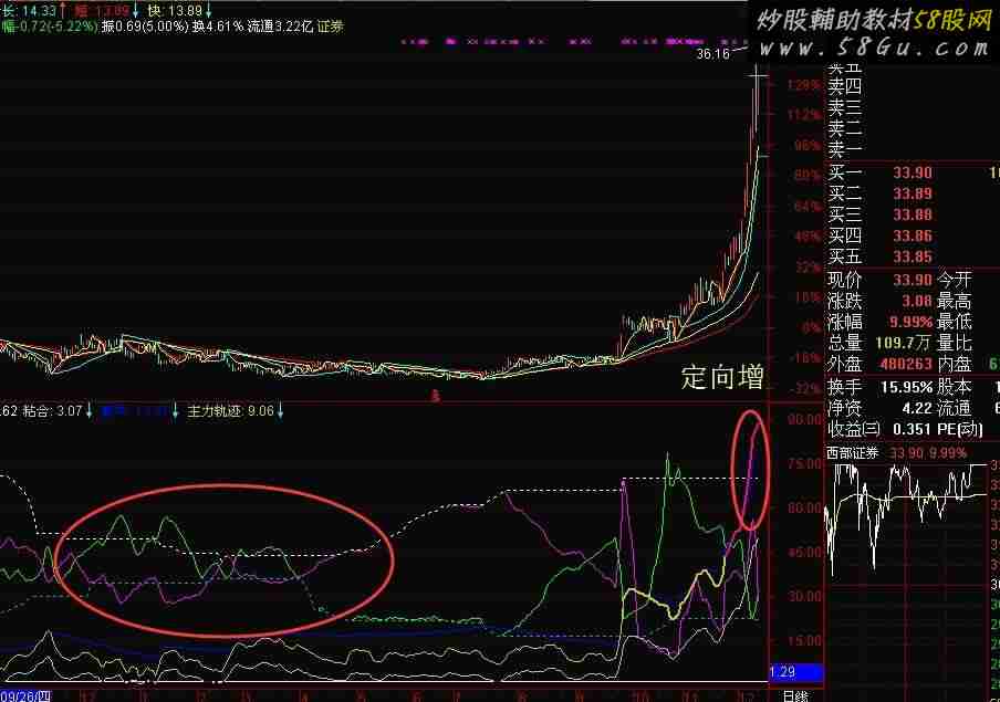 这个指标我前不久发过。对于他的用法还没有完全理解,我的感觉是真的精品【筹码】,因为找不到原作者,特地到这里再一次分享与求助,希望大家研究一下如何运用,能理解多少说多少,我们一起研究吧。 先说说我对指标的用法。首先我把每一根线的来去,浮动大小,作为筹码的异动,两根虚线向中间移动表示集中,有爆发行情的意思。绿色线和紫色线代表高位筹码与低位筹码。他们的移动 表示筹码去留。至于集中粘合主力我想大家都明白。网上很多人这个那个指标 无价 金不换 什么什么的 我看都不如研究研究这个指标。它才是实用性很强的指标。至于什么无价还是有价,赚钱就好。也再一次请高手优化优化与大家分享。股市里的钱是赚不完的,不要小气。