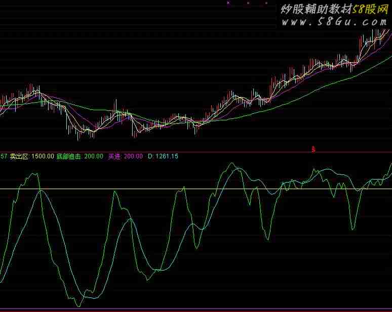 VAR2:=(CLOSE-LLV(LOW,24))/(HHV(HIGH,24)-LLV(LOW,24))*200*10;买卖力度: SMA(VAR2,5,1),COLORGREEN;卖出区: 1500,COLORYELLOW;VAR3:=VOL/((HIGH-LOW)*2-ABS(CLOSE-OPEN));VAR4:=(IF(CLOSE>OPEN,VAR3*(HIGH-LOW),IF(CLOSE<OPEN,VAR3*(HIGH-OPEN+CLOSE-LOW),VOL/2))/(IF(CLOSE>OPEN,0-VAR3*(HIGH-CLOSE+OPEN-LOW),IF(CLOSE<OPEN,0-VAR3*(HIGH-LOW),0-VOL/2))*(-1))-IF(CLOSE>OPEN,0-VAR3*(HIGH-CLOSE+OPEN-LOW),IF(CLOSE<OPEN,0-VAR3*(HIGH-LOW),0-VOL/2))*(-1)/IF(CLOSE>OPEN,VAR3*(HIGH-LOW),IF(CLOSE<OPEN,VAR3*(HIGH-OPEN+CLOSE-LOW),VOL/2)));VAR5:=AMOUNT/(100*VOL);VAR6:=MA(VAR5,40);VAR7:=100*(CLOSE-VAR6)/VAR6;底部追击: IF(VAR4>0 AND VAR7<-12 AND CLOSE/OPEN>1.08,300,200),COLORGREEN;STICKLINE(VAR4>0 AND VAR7<-12 AND CLOSE/OPEN>1.08,1200,200,10,0) , COLORGREEN;买进: IF(VAR4>0 AND VAR7<-12 AND CLOSE/OPEN>1.05,300,200),COLORMAGENTA;STICKLINE(VAR4>0 AND VAR7<-12 AND CLOSE/OPEN>1.05,800,200,6,1),COLORMAGENTA;VAR8:=(CLOSE-LLV(LOW,34))/(HHV(HIGH,34)-LLV(LOW,34))*100;VAR9:=SMA(VAR8,3,1);VARA:=SMA(VAR9,3,1);D: SMA(VARA,5,1)*20, COLORCYAN; |
