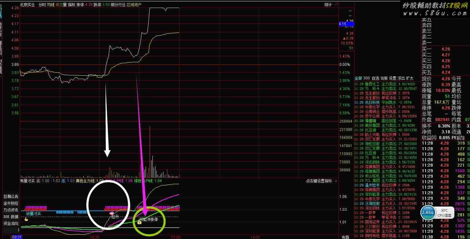 XX:=SUM(AMOUNT,BARSCOUNT(DCLOSE))/SUM(V*100,BARSCOUNT(DCLOSE));黄线:=EXPMA(DCLOSE/XX,20);粉线:=EXPMA(DCLOSE/XX,60);绿线:=EXPMA(DCLOSE/XX,120);底:1,COLORAAAAAA,LINETHICK2;1.02,COLORAAAAAA,LINETHICK1,DOTLINE;高:1.03,COLORFFAA00,LINETHICK2;DRAWICON(CROSS(黄线,1.02),1.025,25);AA:=黄线>粉线 AND 黄线>1.003 AND 粉线>绿线 AND C>EXPMA(C,20) AND EXPMA(C,10)>EXPMA(C,20) AND EXPMA(C,20)>EXPMA(C,60);STICKLINE(AA=1,1.039,1.03,4,0),COLORDD00CC;STICKLINE(C>EXPMA(C,20) AND EXPMA(C,10)>EXPMA(C,20) AND EXPMA(C,20)>EXPMA(C,60) AND黄线>MAX(粉线,绿线),1.03,1.034,1,0),COLORRED;STICKLINE(C<EXPMA(C,20) AND EXPMA(C,10)<EXPMA(C,20) AND EXPMA(C,20)<EXPMA(C,60) AND黄线<MIN(粉线,绿线) AND 黄线<0.969,1.03,1.02,1,0),COLOR00CC00;STICKLINE(C<EXPMA(C,20) AND EXPMA(C,10)<EXPMA(C,20) AND EXPMA(C,20)<EXPMA(C,60) AND黄线<MIN(粉线,绿线),1.03,1.025,1,0),COLORFFAA00;黄色主力线:黄线,COLORYELLOW;粉色大户线:粉线,COLORMAGENTA,LINETHICK2;绿色散户线:绿线,COLORGREEN,LINETHICK2;DRAWICON(黄线>粉线 AND 粉线>绿线 AND C>EXPMA(C,20) AND EXPMA(C,10)>EXPMA(C,20) AND EXPMA(C,20)>EXPMA(C,60) AND 黄线=HHV(黄线,30) AND CROSS(黄线,1.003),1.015,11);DRAWTEXT(黄线>粉线 AND 粉线>绿线 AND C>EXPMA(C,20) AND EXPMA(C,10)>EXPMA(C,20) AND EXPMA(C,20)>EXPMA(C,60) AND 黄线=HHV(黄线,30) AND CROSS(黄线,1.003),1.025,'放量才买'),COLORFFFF00;DRAWTEXT(CROSS(黄线,1.02),1.02,'拉升'),COLORWHITE;DRAWTEXT(CROSS(黄线,1.04),1.015,'可能冲涨停'),COLORFFFFFF;DRAWICON(CROSS(黄线,1.04),1.01,9); |