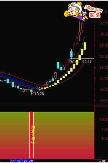 DRAWGBK(O>C,RGB(1654,155,15),RGB(2000,23,59),0,'1',0); VAR6:="KDJ.J#WEEK"(9,3,3); VAR8:="KDJ.J#MONTH"(9,3,3); DEA7:="MACD.DEA#WEEK"; DIFF7:="MACD.DIF#WEEK"; D7:=DIFF7-DEA7; DEA8:="MACD.DEA#MONTH"; DIFF8:="MACD.DIF#MONTH"; D8:=DIFF8-DEA8; 如意金箍棒:=CROSS(VAR6,0) AND D8>0 OR CROSS(VAR8,0) AND D7>0; Y1:=LLV(L,17); Y2:=SMA(ABS(L-REF(L,1)),17,1); Y3:=SMA(MAX(L-REF(L,1),0),17,2); Q:=-(EMA(IF(L<=Y1,Y2/Y3,-3),1)); STICKLINE(如意金箍棒,12,0,6,0),COLORYELLOW; STICKLINE(如意金箍棒,12,0,4,0),COLORMAGENTA; STICKLINE(如意金箍棒,12,0,2,0), COLORRED; DRAWTEXT(如意金箍棒,8,'如'),COLORYELLOW; DRAWTEXT(如意金箍棒,7,'意'),COLORYELLOW; DRAWTEXT(如意金箍棒,6,'金'),COLORYELLOW; DRAWTEXT(如意金箍棒,5,'箍'),COLORYELLOW; DRAWTEXT(如意金箍棒,4,'棒'),COLORYELLOW; |
