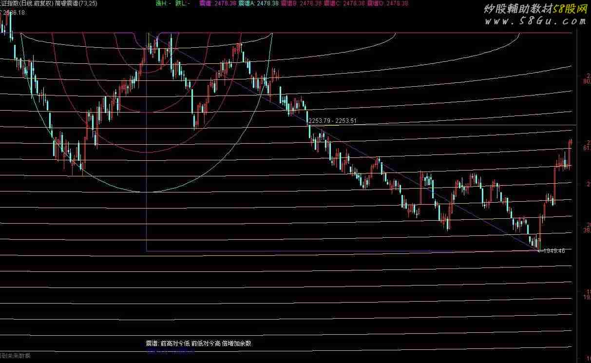{波 1 999 73 NA 1 999 25 } NC:=3; NB:=IF(NA>10,10,NC); CURR:=CURRBARSCOUNT; SS:=PERIOD; AA:=REF(H,NA)=HHV(H,2*NA+1); QY:=BACKSET(AA,NA+1); CC:=FILTER(QY,NA) AND H=HHV(H,NA+1); DDD:=BARSLAST(CC); GDTS:=IF(CC,CURR,0); DINGBU:=IF(DDD,REF(H,DDD),H);{顶部} DINGBUTS:=IF(DDD,REF(GDTS,DDD),GDTS); DINGBU1:=REF(DINGBU,DDD+1); GDCS1:=CONST(DINGBUTS); DINGBUTS1:=REF(DINGBUTS,DDD+1); GDCS2:=CONST(DINGBUTS1); AA1:=REF(L,NA)=LLV(L,2*NA+1); QY1:=BACKSET(AA1,NA+1); CC1:=FILTER(QY1,NA) AND L=LLV(L,NA+1); DD1:=BARSLAST(CC1); DDTS:=IF(CC1,CURR,0); DDTS1:=IF(DD1,REF(DDTS,DD1),DDTS); DDCS1:=CONST(DDTS1); DDTS2:=REF(DDTS1,DD1+1); DDCS2:=CONST(DDTS2); LAA:=REF(H,NB)=HHV(H,2*NB+1); LQY:=BACKSET(LAA,NB+1); LCC:=FILTER(LQY,NB) AND H=HHV(H,NB+1); LDDD:=BARSLAST(LCC); LGDTS:=IF(LCC,CURR,0); LDINGBU:=IF(LDDD,REF(H,LDDD),H);{顶部} LDINGBUTS:=IF(LDDD,REF(LGDTS,LDDD),LGDTS); LDINGBU1:=REF(LDINGBU,LDDD+1); LGDCS1:=CONST(LDINGBUTS); LDINGBUTS1:=REF(LDINGBUTS,LDDD+1); LGDCS2:=CONST(LDINGBUTS1); LAA1:=REF(L,NB)=LLV(L,2*NB+1); LQY1:=BACKSET(LAA1,NB+1); LCC1:=FILTER(LQY1,NB) AND L=LLV(L,NB+1); LDD1:=BARSLAST(LCC1); LDDTS:=IF(LCC1,CURR,0); LDDTS1:=IF(LDD1,REF(LDDTS,LDD1),LDDTS); LDDCS1:=CONST(LDDTS1); LDDTS2:=REF(LDDTS1,LDD1+1); LDDCS2:=CONST(LDDTS2); LLAA:=REF(H,NC)=HHV(H,2*NC+1); LLQY:=BACKSET(LLAA,NC+1); LLCC:=FILTER(LLQY,NC) AND H=HHV(H,NC+1); LLDDD:=BARSLAST(LLCC); LLGDTS:=IF(LLCC,CURR,0); LLDINGBU:=IF(LLDDD,REF(H,LLDDD),H);{顶部} LLDINGBUTS:=IF(LLDDD,REF(LLGDTS,LLDDD),LLGDTS); LLDINGBU1:=REF(LLDINGBU,LLDDD+1); LLGDCS1:=CONST(LLDINGBUTS); LLDINGBUTS1:=REF(LLDINGBUTS,LLDDD+1); LLGDCS2:=CONST(LLDINGBUTS1); LLDINGBU2:=REF(LLDINGBU1,LLDDD+1); LLAA1:=REF(L,NC)=LLV(L,2*NC+1); LLQY1:=BACKSET(LLAA1,NC+1); LLCC1:=FILTER(LLQY1,NC) AND L=LLV(L,NC+1); LLDD1:=BARSLAST(LCC1); LLDDTS:=IF(LLCC1,CURR,0); LLDDTS1:=IF(LLDD1,REF(LLDDTS,LLDD1),LDDTS); LLDDCS1:=CONST(LLDDTS1); LLDDTS2:=REF(LLDDTS1,LLDD1+1); LLDDCS2:=CONST(LLDDTS2); 长G1:=CONST(DRAWLINE(CURR=GDCS1,H,REF(CURR,1)=GDCS1,REF(H,1),1)); 长G2:=CONST(DRAWLINE(CURR=GDCS2,H,REF(CURR,1)=GDCS2,REF(H,1),1)); 长D1:=CONST(DRAWLINE(CURR=DDCS1,L,REF(CURR,1)=DDCS1,REF(L,1),1)); 长D2:=CONST(DRAWLINE(CURR=DDCS2,L,REF(CURR,1)=DDCS2,REF(L,1),1)); 中G1:=CONST(DRAWLINE(CURR=LGDCS1,H,REF(CURR,1)=LGDCS1,REF(H,1),1)); 中G2:=CONST(DRAWLINE(CURR=LGDCS2,H,REF(CURR,1)=LGDCS2,REF(H,1),1)); 中D1:=CONST(DRAWLINE(CURR=LDDCS1,L,REF(CURR,1)=LDDCS1,REF(L,1),1)); 中D2:=CONST(DRAWLINE(CURR=LDDCS2,L,REF(CURR,1)=LDDCS2,REF(L,1),1)); 短G1:=CONST(DRAWLINE(CURR=LLGDCS1,H,REF(CURR,1)=LLGDCS1,REF(H,1),1)); 短G2:=CONST(DRAWLINE(CURR=LLGDCS2,H,REF(CURR,1)=LLGDCS2,REF(H,1),1)); 短D1:=CONST(DRAWLINE(CURR=LLDDCS1,L,REF(CURR,1)=LLDDCS1,REF(L,1),1)); 短D2:=CONST(DRAWLINE(CURR=LLDDCS2,L,REF(CURR,1)=LLDDCS2,REF(L,1),1)); 短G:=CONST(FINDHIGH(H,0,5,1)); 短D:=CONST(FINDLOW(L,0,5,1)); XAM:=CONST(MAX(MAX(MAX(MAX(MAX(长G1,H),MAX(长G2,H)),MAX(MAX(中G1,H),MAX(中G2,H))), MAX(MAX(短G1,H),MAX(短G2,H))),MAX(短G,H))); XIM:=CONST(MIN(MIN(MIN(MIN(MIN(长D1,L),MIN(长D2,L)),MIN(MIN(中D1,L),MIN(中D2,L))), MIN(MIN(短D1,L),MIN(短D2,L))),MIN(短D,L))); 低天:=IF(长D1=XIM,DDCS1,IF(长D2=XIM,DDCS2,IF(中D1=XIM,LDDCS1, IF(中D2=XIM,LDDCS2,IF(短D1=XIM,LLDDCS1,IF(短D=XIM,BARSLAST(短D=XIM)+1,LLDDCS2)))))); 高天:=IF(长G1=XAM,GDCS1,IF(长G2=XAM,GDCS2,IF(中G1=XAM,LGDCS1, IF(中G2=XAM,LGDCS2,IF(短G1=XAM,LLGDCS1,IF(短G=XAM,BARSLAST(短G=XAM)+1,LLGDCS2)))))); 高低距:=CONST(XAM)-CONST(XIM); 天距:=(IF(高天>低天,高天,低天)-IF(高天>低天,低天,高天)); PR:=IF(高天>低天,高天,低天); RN:=IF(高天>低天,CONST(XAM),CONST(XIM)); BX:=230/天距; BY:=100/高低距; XW:=IF(CURR<PR,PR-CURR,CURR-PR)*BX; Y弧:=波; 高低:=DRAWLINE(CURR=高天,XAM,CURR=低天,XIM,0); 低高:=DRAWLINE(CURR=低天,XIM,CURR=高天,XAM,0); 高低线:=IF(高天>低天,高低,低高),COLOR8E2368,LINETHICK2; DRAWBAND(高低线,RGB(125,26,199),高低线,RGB(125,26,199)); 距线1:=DRAWLINE(CURR=高天,XIM,CURR=低天,XIM,0); 距线2:=DRAWLINE(CURR=低天,XIM,CURR=高天,XIM,0); STICKLINE(CURR=高天,XIM,XAM,0,0),COLOR8E2368; 距线:=IF(高天>低天,距线1,距线2),COLOR8E2368,LINETHICK2; DRAWBAND(距线,RGB(125,26,199),距线,RGB(125,26,199)); YWA:=IF(XW<Y弧,SQRT(Y弧*Y弧-XW*XW)/10,0)/BY; 圆弧A:=IF(高天<低天,RN+YWA,RN-YWA),COLORWHITE; DRAWBAND(圆弧A,RGB(255,196,9),圆弧A,RGB(255,196,9)); YWB:=IF(XW<2*Y弧,SQRT(2*Y弧*2*Y弧-XW*XW)/10,0)/BY; 圆弧B:=IF(高天<低天,RN+YWB,RN-YWB),COLORWHITE; DRAWBAND(圆弧B,RGB(255,196,9),圆弧B,RGB(255,196,9)); YWC:=IF(XW<3*Y弧,SQRT(3*Y弧*3*Y弧-XW*XW)/10,0)/BY; 圆弧C:=IF(高天<低天,RN+YWC,RN-YWC); DRAWBAND(圆弧C,RGB(255,196,9),圆弧C,RGB(255,196,9)); YWD:=IF(XW<4*Y弧,SQRT(4*Y弧*4*Y弧-XW*XW)/10,0)/BY; 圆弧D:=IF(高天<低天,RN+YWD,RN-YWD); DRAWBAND(圆弧D,RGB(255,196,9),圆弧D,RGB(255,196,9)); YWE:=IF(XW<5*Y弧,SQRT(5*Y弧*5*Y弧-XW*XW)/10,0)/BY; 圆弧E:=IF(高天<低天,RN+YWE,RN-YWE); DRAWBAND(圆弧E,RGB(255,196,9),圆弧E,RGB(255,196,9)); YWF:=IF(XW<6*Y弧,SQRT(6*Y弧*6*Y弧-XW*XW)/10,0)/BY; 圆弧F:=IF(高天<低天,RN+YWF,RN-YWF); DRAWBAND(圆弧F,RGB(255,196,9),圆弧F,RGB(255,196,9)); YWG:=IF(XW<7*Y弧,SQRT(7*Y弧*7*Y弧-XW*XW)/10,0)/BY; 圆弧G:=IF(高天<低天,RN+YWG,RN-YWG); DRAWBAND(圆弧G,RGB(255,196,9),圆弧G,RGB(255,196,9)); YWH:=IF(XW<8*Y弧,SQRT(8*Y弧*8*Y弧-XW*XW)/10,0)/BY; 圆弧H:=IF(高天<低天,RN+YWH,RN-YWH); DRAWBAND(圆弧H,RGB(255,196,9),圆弧H,RGB(255,196,9)); YWI:=IF(XW<9*Y弧,SQRT(9*Y弧*9*Y弧-XW*XW)/10,0)/BY; 圆弧I:=IF(高天<低天,RN+YWI,RN-YWI); DRAWBAND(圆弧I,RGB(255,196,9),圆弧I,RGB(255,196,9)); YWJ:=IF(XW<10*Y弧,SQRT(10*Y弧*10*Y弧-XW*XW)/10,0)/BY; 圆弧J:=IF(高天<低天,RN+YWJ,RN-YWJ); DRAWBAND(圆弧J,RGB(255,196,9),圆弧J,RGB(255,196,9)); YWK:=IF(XW<11*Y弧,SQRT(11*Y弧*11*Y弧-XW*XW)/10,0)/BY; 圆弧K:=IF(高天<低天,RN+YWK,RN-YWK); DRAWBAND(圆弧K,RGB(255,196,9),圆弧K,RGB(255,196,9)); YWL:=IF(XW<12*Y弧,SQRT(12*Y弧*12*Y弧-XW*XW)/10,0)/BY; 圆弧L:=IF(高天<低天,RN+YWL,RN-YWL); DRAWBAND(圆弧L,RGB(