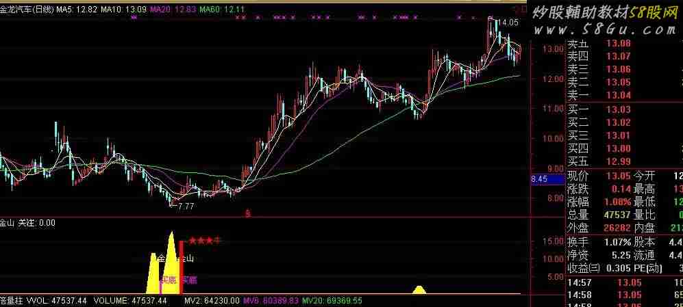 五里金山公式HLM1:=MA(HHV(H,500),13); HLM2:=MA(HHV(H,250),13); HLM3:=MA(HHV(H,89),13); HLM4:=MA(LLV(L,500),13); HLM5:=MA(LLV(L,250),13); HLM6:=MA(LLV(L,89),13); HLM7:=MA((HLM1*0.558+HLM2*0.558+HLM3*0.558+HLM4*0.96+HLM5*0.96+HLM6*0.96)/6,17); HLM8:=MA((HLM1*0.55+HLM2*0.55+HLM3*0.65+HLM4*1.25+HLM5*1.23+HLM6*1.2)/6,17); HLM9:=MA((HLM1*0.68+HLM2*0.68+HLM3*0.68+HLM4*1.3+HLM5*1.3+HLM6*1.3)/6,17); HLM10:=MA((HLM7*3+HLM8*2+HLM9)/6*1.738,17); HLM11:=SMA(ABS(L-REF(L,1)),3,1)/SMA(MAX(L-REF(L,1),0),3,1)*100; HLM12:=MA(IF(C*1.35<=HLM10,HLM11*10,HLM11/10),3); HLMH:=HHV(HLM12,30);关注:MA(IF(L<=LLV(L,42),(HLMH+HLM11*2)/3,0),3)/200; DRAWBAND(关注,RGB(255,255,50),0.00001,RGB(0,100,50)); STICKLINE(CROSS(3.8,关注) AND 关注<REF(关注,1),0,3.8,1,0),COLORFF00FF; DRAWTEXT(CROSS(3.8,关注) AND 关注<REF(关注,1),3.8,'买底'),COLORFF00FF; STICKLINE(CROSS(10,关注) AND 关注<REF(关注,1),0,10,2,0),COLORyellow; DRAWTEXT(CROSS(10,关注) AND 关注<REF(关注,1),10,'金山'),COLORyellow; STICKLINE(CROSS(62,关注) AND 关注<REF(关注,1),0,18,4,0),COLORred; DRAWTEXT(CROSS(38,关注) AND 关注<REF(关注,1),18,'倾买'),COLORred; JS:=LAST(关注>0.618,3,1) AND (COUNT(CROSS(0.618,关注) OR CROSS(62,关注),21)>=2); stickline(FILTER(JS,13),15,0,4,0),COLORRED; DRAWTEXT(FILTER(JS,13),15,'←★★★牛'),COLORred; |