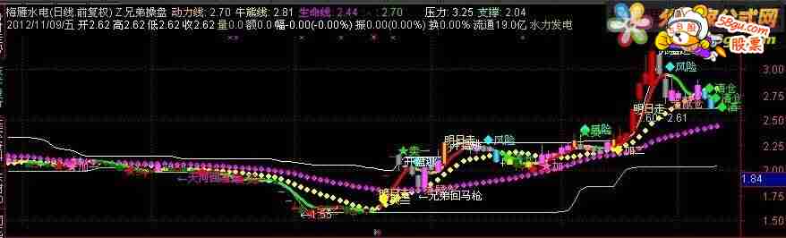 动力线:MA(C,5),LINETHICK3,COLOR00CCFF; 牛熊线:MA(C,13),CIRCLEDOT,COLORYELLOW; 生命线:MA(C,34),CIRCLEDOT,COLORMAGENTA; MA05:=MA(C,5); MA10:=MA(C,10); MA20:=MA(C,20); MA30:=MA(C,30); 五日乖离率:=(C-MA05)/MA05*100; BB05:=ATAN((MA05/REF(MA05,1)-1)*100)*180/3.1416; 速度5:=SMA(EMA((MA05-REF(MA05,1))/REF(MA05,1),3)*100,3,1); 加速度5:=EMA((速度5-REF(速度5,1)),3),NODRAW; IF(BB05>30 AND MA05>REF(MA05,1), MA05,DRAWNULL),LINETHICK3,COLORRED; BB10:=ATAN((MA10/REF(MA10,1)-1)*100)*180/3.1416; IF(BB05<0 AND MA05<REF(MA05,1), MA05,DRAWNULL),LINETHICK3,COLORGREEN; 三拾日乖离率:=(C-MA30)/MA30*100,NODRAW; VAR1:=(MA20-MA30)>REF((MA20-MA30),1) AND MA20>REF(MA20,1) AND MA30>REF(MA30,1); VAR2:=(MA30-MA20)<REF((MA30-MA20),1) AND MA20<REF(MA20,1) AND MA30<REF(MA30,1); BB30:=ATAN((MA30/REF(MA30,1)-1)*100)*180/3.1416; 强势狙击:=FILTER(BB30>30 AND BB10>45 AND CROSS(BB05,60),10); 加仓:=FILTER(COUNT(CROSS(BB05,30),5)>=1 AND MA05>REF(MA05,1) AND 三拾日乖离率>REF(三拾日乖离率,1) AND MA10>REF(MA10,1) AND 加速度5>REF(加速度5,1) AND 速度5>REF(速度5,1) ,10) ; 清仓:=FILTER(COUNT(CROSS(30,BB05),5)>=1 AND (C>MA30 OR O>MA30) AND MA05<REF(MA05,1) AND 三拾日乖离率<REF(三拾日乖离率,1) AND MA10<REF(MA10,1),10); DRAWTEXT(加仓 ,LOW*0.98,'◆加二'),COLORYELLOW; JC:=CROSS(0,五日乖离率) AND 三拾日乖离率<REF(三拾日乖离率,1) AND MA10>REF(MA10,1) ; 减仓:=FILTER(JC,10); MR:=COUNT(CROSS(五日乖离率,0),3)>=1 AND 三拾日乖离率>REF(三拾日乖离率,1) AND MA05>REF(MA05,1) AND (C/REF(C,1)-1)*100>5 AND REF(C,1)<MA30; 买入:=FILTER(MR,10); DRAWTEXT(减仓,HIGH*1.02,'◆风险'),COLORCYAN; DRAWTEXT(买入,LOW*0.96,'◆买二'),COLORYELLOW; DRAWTEXT(清仓 ,HIGH*1.00,'◆清仓'),COLORGREEN; VAR21:=MAX(ABS(HIGH-AMOUNT/VOL/100),ABS(AMOUNT/VOL/100-LOW)); VAR3:=ABS((OPEN+CLOSE)/2-AMOUNT/VOL/100); MV:=(VAR21+VAR3)/AMOUNT*VOL*100*50; 压力:MA(REF(HHV(C,30),1),2),COLOR9DFFFF; 支撑:MA(REF(LLV(C,30),1),2),COLORABFF46; {彩色K线} TYX3:=MA(REF(HHV((C+L+O+H)/4,30),1),3); TYX4:=MA((C+L+O+H)/4,13); TYX5:=EMA((C+L+O+H)/4,21); {空心红} STICKLINE(C<TYX5 AND C>O,H,L,0,0),COLORRED; STICKLINE(C<TYX5 AND C>O,C,O,3,1),COLORRED; {深绿} STICKLINE(C<TYX5 AND C<O,H,L,0,0),COLOR007700; STICKLINE(C<TYX5 AND C<O,C,O,3,0),COLOR005500; STICKLINE(C<TYX5 AND C<O,C,O,2,0),COLOR006600; STICKLINE(C<TYX5 AND C<O,C,O,1,0),COLOR007700; {蓝} STICKLINE(C>TYX5 AND C<O,H,L,0,0),COLORFFDD44; STICKLINE(C>TYX5 AND C<O,C,O,3,0 ),COLORFF7700; STICKLINE(C>TYX5 AND C<O,C,O,2,0 ),COLORFFAA22; STICKLINE(C>TYX5 AND C<O,C,O,1 ,0 ),COLORFFDD44; {黄} STICKLINE(C>TYX5 AND C>O,H,L,0,0 ),COLOR00EEFF; STICKLINE(C>TYX5 AND C>O,C,O,3,0 ),COLOR00AAFF; STICKLINE(C>TYX5 AND C>O,C,O,2,0 ),COLOR00CCFF; STICKLINE(C>TYX5 AND C>O,C,O,1,0 ),COLOR00EEFF; {粉红} STICKLINE(C>TYX4 AND C>O,H,L,0,0),COLORFF66AA; STICKLINE(C>TYX4 AND C>O,C,O,3,0 ),COLORFF11FF; STICKLINE(C>TYX4 AND C>O,C,O,2,0 ),COLORFF44FF; STICKLINE(C>TYX4 AND C>O,C,O,1,0 ),COLORFF66FF; {亮灰} STICKLINE(C>TYX4 AND C<O,H,L,0,0),COLOR999999; STICKLINE(C>TYX4 AND C<O,C,O,3,0),COLOR555555; STICKLINE(C>TYX4 AND C<O,C,O,2,0),COLOR777777; STICKLINE(C>TYX4 AND C<O,C,O,1,0),COLOR999999; {深红} STICKLINE(C>TYX3 AND C>O,H,L,0,0),COLOR0000DD; STICKLINE(C>TYX3 AND C>O,C,O,3,0),COLOR000099; STICKLINE(C>TYX3 AND C>O,C,O,2,0),COLOR0000BB; STICKLINE(C>TYX3 AND C>O,C,O,1,0),COLOR0000DD; {涨跌停K线} STICKLINE(HIGH=LOW AND CLOSE=OPEN AND (CLOSE/REF(CLOSE,1))>1.048,HIGH,LOW,3,0) ,COLORRED; STICKLINE(HIGH=LOW AND CLOSE=OPEN AND (REF(CLOSE,1)/CLOSE)>1.048,HIGH,LOW,3,0) ,COLOR00FF00; {突破} STICKLINE(REF(COUNT(C<TYX3,5)=5,1) AND C>TYX3 AND C>O,C,O,1,0),COLOR00CCFF; {买卖主图} MA18:=MA(CLOSE,18); MTM:=C-REF(C,1); DX:=100*EMA(EMA(MTM,6),6)/EMA(EMA(ABS(MTM),6),6); 买:=LLV(DX,2)=LLV(DX,7) AND COUNT(DX<0,2) AND CROSS(DX,MA(DX,2)); DRAWTEXT(FILTER(买=1,5),LOW,'★买一'),COLORRED; 加1:=MA18>=REF(MA18,3) AND CROSS(CLOSE,MA18); DRAWTEXT(加1,LOW*0.99,'★加一'),COLORCC66FF; 卖一:=HHV(DX,2)=HHV(DX,7) AND COUNT(DX>50,2) AND CROSS(MA(DX,2),DX); DRAWTEXT(FILTER(卖一=1,1),HIGH*1.01,'★卖一'),COLORGREEN; {牛熊通吃} AA1:=AMOUNT/V; BB1:=L<AA1*0.9; CC1:=(C-REF(C,1))/REF(C,1)*100>1.2; DD1:=L<MA(C,5)*0.921; EE1:=V<MA(V,5)*1.5; FF1:=BB1 AND CC1 AND DD1 AND EE1; DRAWTEXT(FF1,LOW*0.99,'老鼠仓'),COLOR4080FF; {预测明天} XXS:=MA(LOW,5)*(1-5/100); XXS1:=MA(HIGH,5)*(1+5/100); 均线:=C,COLORGREEN; AAAA:=CLOSE/REF(CLOSE,3)<=0.85 AND CROSS(C,XXS) AND C>REF(C,1),LINETHICK0 ; DRAWTEXT(AAAA,L*0.95,'下影买'),COLORRED; BBAA:=CROSS(XXS1,C); DRAWTEXT(CROSS(XXS1,C),H,'开盘逃'),COLORWHITE; DDDD:=CROSS(C,XXS1); DRAWTEXT(DDDD,H,'明日走'),COLORYELLOW; {兄弟指标} AAA:=MA(LOW,5)*(1-5/100); BBB:=(HHV(AAA,5)+LLV(AAA,5))/2; DRAWTEXT(CROSS(BBB,L) AND BBB>REF(BBB,1),L*0.98,'←兄弟回马枪'),COLORWHITE; {天河指标} DIF:=EMA(CLOSE,12)-EMA(CLOSE,26); DEA:=EMA(DIF,9); DRAWTEXT(REF(CROSS(DEA,DIF),1) AND CROSS(DIF,DEA),L*0.97,'←天河回马抢'),COLORMAGENTA; {见好就收} VSR2:=(CLOSE-LLV(LOW,20))/(HHV(HIGH,20)-LLV(LOW,20))*100; VSR3:=SMA(VSR2,4,1); VSR4:=SMA(VSR3,2,1); DRAWTEXT(VSR4>82 AND VSR3>89,HHV(C,30)*1.02,'收'),COLORGREEN;