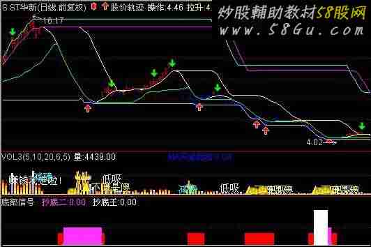 BIAS1:=(CLOSE-MA(CLOSE,6))/MA(CLOSE,6)*100; BIAS2:=(CLOSE-MA(CLOSE,12))/MA(CLOSE,12)*100; BIAS3:=(CLOSE-MA(CLOSE,24))/MA(CLOSE,24)*100; BIAS:=(BIAS1+2*BIAS2+3*BIAS3)/6; 乖离:=MA(BIAS,3); 接近底部:STICKLINE(乖离<-12 AND 乖离>=-18,2,0,6,0) , COLORRED; 抄底二:IF(乖离<-18,3,0),COLORFF35FF,LINETHICK1; STICKLINE(乖离<-18,3,0,6,0),COLORFF35FF;VAR1:=DMA(CLOSE,VOL/MA(VOL,4)/4); VAR2:=DMA(CLOSE,VOL/MA(VOL,31)/31); VAR3:=(CLOSE-VAR1)/VAR1*100<-10; VAR4:=(VAR1-VAR2)/VAR2*100<-16; VAR5:=(CLOSE-MA(CLOSE,50))/MA(CLOSE,50)*100<-23; VAR6:=SMA(MAX(CLOSE-REF(CLOSE,1),0),3,1)/SMA(ABS(CLOSE-REF(CLOSE,1)),3,1)*100>16; VAR7:=100*(HHV(HIGH,27)-CLOSE)/(HHV(HIGH,27)-LLV(LOW,27)); VAR8:=INDEXC; VAR9:=MA(VAR8,6); VARA:=MA(VAR8,24); VARB:=MA(VAR8,32); VARC:=VARB>VAR9*1.11 AND VARA>VAR9*1.095; SSS:=(VAR3 AND VAR4 AND (OPEN-REF(CLOSE,1))/REF(CLOSE,1)>-0.07 OR VAR5 AND VAR6 AND CROSS(VAR7,79) OR VARC AND CLOSE/COST(8)<=0.8)*100; 抄底王:SSS>0,COLORWHITE,LINETHICK1; STICKLINE(SSS>0,0,6,6,0),COLORWHITE;