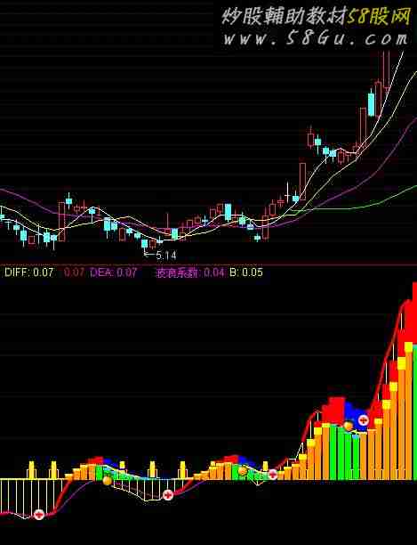 DIFF:EMA(CLOSE,6) - EMA(CLOSE,13),LINESTICK,COLORYELLOW; IF(DIFF>=REF(DIFF,1),DIFF,DRAWNULL),COLORRED,LINETHICK3; DEA:EMA(DIFF,5); MACD:=2*(DIFF-DEA); A:=MACD; G:=MA(MACD,2); J:=MA(MACD,3); J1:=MA(MACD,5); STICKLINE(CROSS(MA(A,1),G),0.05,0,4,1),COLORYELLOW,LINETHICK2;{选股信号:结合线下DIFF看} STICKLINE(CROSS(MA(A,1),G),0.07,0,2,0),COLORLIMAGENTA,LINETHICK2; STICKLINE(CROSS(MA(A,1),G),0.09,0,1,0),COLORYELLOW; VAR13:=IF(YEAR>=2018 AND MONTH>=11 AND DAY>=1,0,1); AA:=(MA(C,1)+MA(C,3)+MA(C,5)+MA(C,7)+MA(C,9))/5; BB:=(MA(C,2)+MA(C,4)+MA(C,6)+MA(C,8)+MA(C,10))/5; CC:=EMA(AA,2); DD:=EMA(BB,5); VAR14:=MAX(EMA(AA,2)-EMA(BB,5),0)*1.2; VAR15:=EMA(VAR14,5); SS:=EMA(VAR15,2); 风险系数:=(VAR15-SS)/10*VAR13; 波浪系数:VAR15*VAR13,STICK,COLORFF00FF; A10:=波浪系数,LINETHICK1 ; B:MA(A10,3),COLORYELLOW,LINETHICK2; B2:=MA(B,2)*2-B; STICKLINE(B>B2,1.5*B,B2,3,0),COLOR0000FF; STICKLINE(B<B2,1.5*B,B2,3,0),COLORBLUE; STICKLINE(VAR15>REF(VAR15,1) AND VAR13,VAR15,0,2,0),COLOR0099FF; STICKLINE(VAR15>REF(VAR15,1) AND VAR13,VAR15,SS,3.5,0),COLORYELLOW; STICKLINE(VAR15<REF(VAR15,1) AND VAR13,0,VAR15,2,0),COLORGREEN; STICKLINE(VAR15<REF(VAR15,1) AND VAR13,VAR15,SS,3.5,0),COLORFFCC33; WB:=CROSS(DIFF,DEA);{=号前的符号可根据需要改} WS:=CROSS(DEA,DIFF); DRAWICON(WB,(DEA * 1.02),23); DRAWICON(WS,(DEA * 1.01),17); |