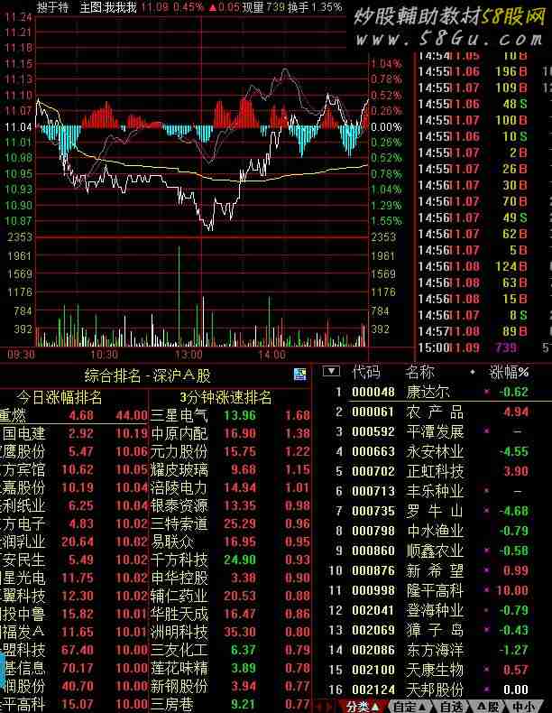 本人再发一分时图主图叠加MACD指标. 依然开源,我说的分时图主图的MACD,不是副图,所以你保存公式的时候一定要存为主图叠加啊. 这么做的好处是不用按F5了,坏处就是看图有点晕.这公式我去了很多不必要的东西. 简单就是美嘛.均价:SUM(V*C,0)/SUM(V,0),COLORGREEN,LINETHICK1;IF(均价<=REF(均价,1),均价,DRAWNULL),COLORGREEN,LINETHICK3;IF(均价>=REF(均价,1),均价,DRAWNULL),COLORYELLOW,LINETHICK3;时间:=TIME=100000;N:=BARSLAST(时间);CS1:CONST(IF(N,MAX(REF(HHV(H,0),N),DYNAINFO(4)),HHV(H,0))),DOTLINE,COLOR00FFFF;CS2:CONST(IF(N,MIN(REF(LLV(L,0),N),DYNAINFO(4)),LLV(L,0))),DOTLINE,COLOR00FFFF;DRAWNUMBER(CURRBARSCOUNT=2,CS1,CS1),COLORYELLOW,LINETHICK3; {分时MACD}DIF:=EMA(CLOSE,12)-EMA(CLOSE,26);DEA:=EMA(DIF,9);MACD:=2*(DIF-DEA);X:=CONST(HHV(ABS(C-DYNAINFO(3)),FROMOPEN))/CONST(HHV(ABS(DIF),FROMOPEN))*0.6;DI:DIF*X+DYNAINFO(3),COLORGRAY;DE:DEA*X+DYNAINFO(3),COLOR7700AA;MAC:=MACD*X;STICKLINE(MAC>0,DYNAINFO( 3),MAC+DYNAINFO( 3),0,1),COLORRED;STICKLINE(MAC<0,DYNAINFO( 3),MAC+DYNAINFO( 3),0,1),COLORCYAN;{板块概念}H1:=MAX(DYNAINFO(3),DYNAINFO(5));L1:=MIN(DYNAINFO(3),DYNAINFO(6));P1:=H1-L1;阻力:=L1+P1*7/8,COLORGREEN;支撑:=L1+P1*0.5/8,COLORMAGENTA;最新:CLOSE,LINETHICK1,COLORWHITE;AA:=SUM(AMOUNT,BARSCOUNT(C))/SUM(VOL*100,BARSCOUNT(C));BB:=BETWEEN(C/AA,C+H,C-H);DXJP:=(CLOSE-LLV(LOW,34))/(HHV(HIGH,21)-LLV(LOW,34))*100;FSZX:=(EMA(DXJP,3)-50)*2,COLORGRAY;GHYJKU:=BETWEEN((DCLOSE)/(SUM(AMOUNT,BARSCOUNT((DCLOSE)))/SUM(VOL*100,BARSCOUNT((DCLOSE)))),1.05,0.95);VBNH:=IF(GHYJKU=0,MA((DCLOSE),BARSCOUNT((DCLOSE))),(SUM(AMOUNT,BARSCOUNT((DCLOSE)))/SUM(VOL*100,BARSCOUNT((DCLOSE)))));绝对卖:=EMA(C,240)*1.05 ; 波段卖:=EMA(C,240)*1.03 ; 波段买:=EMA(C,240)*0.99 ;绝对买:=EMA(C,240)*0.98 ;高风险紫色:=C>=绝对卖,NODRAW,COLORMAGENTA;IF(C>=绝对卖,C,DRAWNULL),COLORMAGENTA,LINETHICK2;IF(C<=绝对买,C,DRAWNULL),COLORRED,LINETHICK2;{小鱼买卖} A1:=MA(CLOSE,20);A2:=A1+(2*(STD(CLOSE,20)));A3:=A1-(2*(STD(CLOSE,20)));若愚:=(CLOSE-A3)/(A2-A3),COLORWHITE;若愚1:=MA(若愚,6);IF(若愚>1,C,DRAWNULL),COLORMAGENTA,LINETHICK1;IF(若愚<0,C,DRAWNULL),COLORRED,LINETHICK1; |