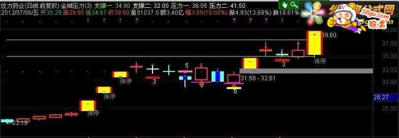 P:=(2,4,3); N:=POW(2,P); FF:=CONST(REF(C,1)); AA:=IF((FF < 100),FF,(FF / 100)); A:=INTPART(((N * (LOG(AA) / LOG(2))) + 1)); Y1:=(A/N); Y2:=((A+1 ) / N); Y3:=((A+2 ) / N); Z1:=((A-1) / N);{第一个支撑} Z2:=((A-2) / N); Z3:=((A-3) / N); ZC1:=IF((FF > 100),(POW(2,Z1) * 100),POW(2,Z1)); ZC2:=IF((FF > 100),(POW(2,Z2) * 100),POW(2,Z2)); ZC3:=IF((FF > 100),(POW(2,Z3) * 100),POW(2,Z3)); YL1:=IF((FF > 100),(POW(2,Y1) * 100),POW(2,Y1)); YL2:=IF((FF > 100),(POW(2,Y2) * 100),POW(2,Y2)); YL3:=IF((FF > 100),(POW(2,Y3) * 100),POW(2,Y3)); 支撑一:IF(CURRBARSCOUNT<=50,ZC1,DRAWNULL),COLOR00F24F; 支撑二:IF(CURRBARSCOUNT<=50,ZC2,DRAWNULL),COLORWHITE,POINTDOT; {支撑三:IF(CURRBARSCOUNT<=50,ZC3,DRAWNULL),COLORWHITE,POINTDOT;} 压力一:IF(CURRBARSCOUNT<=50,YL1,DRAWNULL),COLOR05DDFC; 压力二:IF(CURRBARSCOUNT<=50,YL2,DRAWNULL),COLORWHITE,POINTDOT; {压力三:IF(CURRBARSCOUNT<=50,YL3,DRAWNULL),COLORWHITE,POINTDOT;} 均价线:=AMOUNT/V/100; C2:=REF(C,1); 涨停:=IF(REF(C,1)*1.1-C<0.01 ,1,0); STICKLINE(涨停,OPEN,CLOSE,4,0),COLORRED; STICKLINE(涨停,OPEN,CLOSE,3,0),COLORYELLOW; STICKLINE(涨停,H,L,0,0),COLORYELLOW; 支撑线:=(MA(CLOSE,3)+MA(CLOSE,6)+MA(CLOSE,12)+MA(CLOSE,24))/4; LC:=REF(CLOSE,1); 操作线:=SMA(MAX(CLOSE-LC,0),2,1)/SMA(ABS(CLOSE-LC),2,1)*100; 趋势线:=SMA(MAX(CLOSE-LC,0),14,1)/SMA(ABS(CLOSE-LC),14,1)*100; 震仓线:=45; 震仓线2:=50; 逃命线:=80; 抄底线:=20; 绝底线:=5; PP2:=操作线<震仓线2 AND REF(操作线,1)>震仓线2 ; PP:=操作线<震仓线 AND REF(操作线,1)>震仓线 ; PP3:=操作线<抄底线 AND REF(操作线,1)>抄底线; HH:=COUNT(涨停,13)>=1; STICKLINE(PP2 AND HH,OPEN,CLOSE,0.8,0),COLORBLUE; STICKLINE(PP AND HH,OPEN,CLOSE,0.8,0),COLORBLUE; STICKLINE(PP3 AND HH,OPEN,CLOSE,0.8,0),COLORBLUE; A8:=SMA(L,4,3) ; STICKLINE(A8 AND REF(PP,1) AND HH ,A8*0.9999,A8*0.9979,5,0); DRAWICON(A8 AND REF(PP,1) AND HH,L*0.98,1); STICKLINE(A8 AND REF(PP3,1) AND HH ,A8*0.9999,A8*0.9979,5,0); DRAWICON(A8 AND REF(PP3,1) AND HH,L*0.98,1); HD:=COUNT(涨停,21)>=1; A1:=SMA(H,4,3); STICKLINE(A1 AND HD ,A1,A1*1.001,0.3,0); ZT:=C/REF(C,1)>1.097; DRAWTEXT(ZT,L*0.98,'涨停'),COLORGRAY; VARZT:=BARSLAST(C/REF(C,1)>1.097); STICKLINE(VARZT=2,L*0.97,L*0.98,3.5,0),COLOR0000FF; DRAWTEXT(VARZT=2,L*0.95,'3'),COLORYELLOW; STICKLINE(VARZT=4,H*1.03,H*1.02,3.5,0),COLOR9966FF; DRAWTEXT(VARZT=4,H*1.06,'5'),COLORYELLOW; STICKLINE(VARZT=7,L*0.97,L*0.98,3.5,0),COLOR00FFFF; DRAWTEXT(VARZT=7,L*0.95,'8'),COLORYELLOW; STICKLINE(VARZT=12,H*1.03,H*1.02,3.5,0),COLORFF33FF; DRAWTEXT(VARZT=12,H*1.06,'13'),COLORYELLOW; 乘:=EMA(HHV(HIGH,1),8); 胜:=EMA(CLOSE,8); 追:=((胜<REF(胜,1)) AND (CLOSE<胜)); 击:=IF(((乘<REF(乘,1)) OR 追),1,0); 出击:=((((COUNT((击=1),4)=3) AND (击=0)) AND (((CLOSE - REF(CLOSE,1)) / REF(CLOSE,1)) > 0.085)) * 89); DRAWICON((出击 >=89),L*0.97,1); DRAWTEXT((出击 >=89),L*0.97,'出击'),COLORYELLOW; STICKLINE((出击 >=89),H,L,4,0),LINETHICK1,COLORRED; STICKLINE((出击 >=89),H,L,0.2,0),COLORYELLOW; STICKLINE((出击 >=89),O,C,2,0),LINETHICK1,COLORYELLOW; DRAWICON((出击 >=89),(H+L)/2,7); |