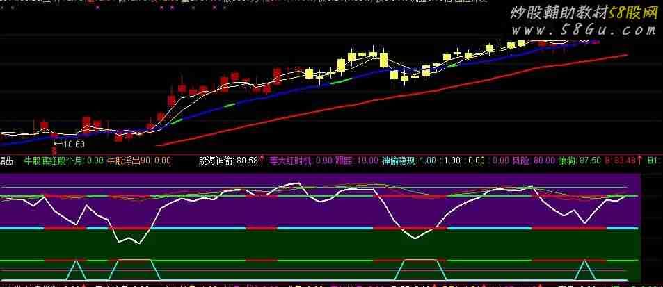 抓在短期低位!RSVCC=(CLOSE-LLV(LOW,3))(HHV(HIGH,3)-LLV(LOW,3))100;STICKLINE( RSVCC0,100,50,10,0),COLOR660044;STICKLINE( RSVCC0,50,0,10,0),COLOR003300;N=9;M1=3;M2=3;P=9;快线=(CLOSE-LLV(LOW,N))(HHV(HIGH,N)-LLV(LOW,N))100,,COLORRED,LINETHICK2;慢线=SMA(快线,M1,1)COLORCYAN;空=SMA(慢线,M2,1),COLOR00FF00;牛股底红股个月0,COLOR00FF00;牛股浮出90IF(BARSLAST(CROSS(慢线,空))P AND BARSLAST(CROSS(空,慢线))P AND CROSS(慢线,空) AND 慢线20,90,0),COLOR0099FF;STICKLINE(牛股浮出90,0,60,9,0),COLORGREEN;STICKLINE(牛股浮出90,0,70,7,0),COLORFF0033;STICKLINE(牛股浮出90,0,80,6,0),COLORFF0066;STICKLINE(牛股浮出90,0,90,5,0),COLORFF0099;STICKLINE(牛股浮出90,0,100,3,0),COLORFF00CC;STICKLINE(牛股浮出90,0,105,1.5,0),COLOR0099FF;STICKLINE(牛股浮出90,0,105,0.6,0),COLORRED;AA=LLV(LOW,13);BB=HHV(HIGH,13);DD=(EMA(((CLOSE-AA)(BB-AA))(4),4))(25);股海神偷DD,COLORWHITE,LINETHICK2;股海=(((DD-LLV(DD,21))(HHV(DD,13)-LLV(DD,21)))(4))(25);等大红时机IF(CROSS(股海,90) AND (股海神偷40),70,0),COLORMAGENTA;{DRAWICON(CROSS(股海,90),45,5);}跟踪10,COLORFF00FF;神偷隐现IF(股海神偷55,20,1)COLORCYAN,LINETHICK2;REF(股海神偷,1)=1 AND (REF(股海神偷,2));REF(REF(股海神偷,1),2)AND (股海神偷跟踪),COLOR00FFFF;IF((COUNT((股海神偷REF(股海神偷,1)),1)=1) AND (REF(股海神偷,1)REF(REF(股海神偷,1),1)) AND (股海神偷跟踪),50,0),COLORF00FF0;风险80,COLORFF00FF;狼狗87.5,COLOR00FF00;VAR6=(2C+H+L)4;VAR8=LLV(LOW,30);VARA=HHV(HIGH,30);BEMA((VAR6-VAR8)(VARA-VAR8)100,8),COLORRED;B1EMA(B,5),COLORGREEN;STICKLINE(B0 AND B-B1=0,79,80,8,0),COLOR00FF00;STICKLINE(B0 AND B-B10,79,80,8,0),COLORRED;STICKLINE(B0 AND B-B1=0,49,50,8,0),COLORCYAN;STICKLINE(B0 AND B-B10,49,50,8,0),COLORRED;STICKLINE(B0 AND B-B1=0,19,20,8,0),COLOR00FF00;STICKLINE(B0 AND B-B10,19,20,8,0),COLORRED;VAR1=HHV(HIGH,9)-LLV(LOW,9);VAR2=HHV(HIGH,9)-CLOSE;VAR3=CLOSE-LLV(LOW,9);VAR4=VAR2VAR1100-70;VAR5=(CLOSE-LLV(LOW,60))(HHV(HIGH,60)-LLV(LOW,60))100;VAR7=SMA(VAR3VAR1100,3,1);VAR9=SMA(VAR7,3,1)-SMA(VAR4,9,1);VARB=HHV(HIGH,34);VARC=EMA((VAR6-VAR8)(VARB-VAR8)100,13);VARD=EMA(0.667REF(VARC,1)+0.333VARC,2);VARE=SMA(MAX(CLOSE-REF(CLOSE,1),0)CLOSE,8,1)SMA(ABS(INDEXC-REF(INDEXC,1))INDEXC,8,1)100-25;VARF=MA(VARE,3);VAR10=REF(VARF,1);红柱出现为买入 STICKLINE(CROSS(VARC,VARD) AND VARCVARD AND VARC18,20,0,30,0),COLORRED;{STICKLINE(B-B10,B,B1,8,0),COLORRED;STICKLINE(B-B10,B,B1,8,0),COLORCYAN;}; |