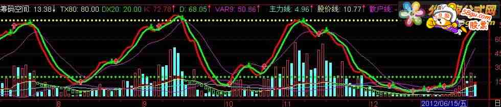 筹码空间:IF(WINNER(CLOSE),WINNER(CLOSE)*100,20),VOLSTICK; TX80:80,POINTDOT COLORYELLOW,LINETHICK4; DX20:20,POINTDOT COLORGREEN,LINETHICK4; VAR1:=LLV(LOW,21); VAR2:=HHV(HIGH,21); K: EMA((CLOSE-VAR1)/(VAR2-VAR1)*100,6),COLORRED,LINETHICK3; D: EMA(0.667*REF(K,1)+0.333*K,2),COLORGREEN,LINETHICK3; VAR3:=LLV(LOW,55); VAR4:=HHV(HIGH,34); VAR5:=EMA((CLOSE-VAR3)/(VAR4-VAR3)*100,3); VAR6:=(K+VAR5)/2; VAR7:=EMA(0.667*REF(VAR5,1)+0.333*K,2); VAR8:=EMA(VAR6,5); VAR9:EMA(0.667*REF(VAR8,1)+0.333*VAR8,2); DRAWICON(LONGCROSS(D,K,0.1),D,2),COLORRED,LINETHICK3; DRAWICON(LONGCROSS(K,D,0.1),K,1),COLORGREEN,LINETHICK3; {通达信股票指标公式} 黄帝:=(CLOSE-LLV(LOW,32))/(HHV(HIGH,32)-LLV(LOW,32))*1.2*CLOSE; 御用:=SMA(黄帝,13,1); 主力线:SMA(御用,5.5,1.5),COLORCYAN; 股价线:3*御用-2*主力线,COLORYELLOW; 散户线:4*主力线-3*御用,COLORMAGENTA; L1:=EMA(黄帝,3); L2:=EMA(黄帝,5); L3:=EMA(黄帝,7); STICKLINE(L1>L2,L3,L1,2,1),COLORRED; STICKLINE(L1<L2,L3,L1,2,1),COLORGREEN; T1:=L2>L3 AND L1<REF(L1,1); T2:=L2<L3 AND L1>REF(L1,1); STICKLINE(T1,L1,L3,2,0),COLORRED; STICKLINE(T2,L1,L3,2,0),COLORGREEN; |