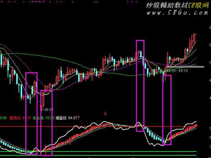 其实短线操作次数增加,失误也会增加。最好的操作就是波段,比短线稍微长一点比中线短一些,适合中小投资者。本指标我用了半年感觉信号还不错,有喜欢的朋友去看看! VA1:=HHV(HIGH,9)-LLV(LOW,9); VA2:=HHV(HIGH,9)-CLOSE;VA3:=CLOSE-LLV(LOW,9);VA4:=VA2/VA1*100-70;VA5:=(CLOSE-LLV(LOW,60))/(HHV(HIGH,60)-LLV(LOW,60))*100;VA6:=(CLOSE+HIGH+LOW)/3;VA7:=SMA(VA3/VA1*100,3,1);VA8:=LLV(LOW,34);VA9:=SMA(VA7,3,1)-SMA(VA4,9,1);VARA:=IF(VA9>100,VA9-100,0);VARB:=HHV(HIGH,34);VARC:=EMA((VA6-VA8)/(VARB-VA8)*100,13);VARD:=EMA(0.667*REF(VARC,1)+0.333*VARC,2);VARE:=SMA(MAX(CLOSE-REF(CLOSE,1),0)/CLOSE,8,1)/SMA(ABS(INDEXC-REF(INDEXC,1))/INDEXC,8,1)*100-25;VARF:=MA(VARE,3);VAR1:=HHV(HIGH,9)-LLV(LOW,9);VAR2:=HHV(HIGH,9)-CLOSE;VAR3:=CLOSE-LLV(LOW,9);VAR4:=((VAR2)/(VAR1))*(100)-70;VAR5:=((CLOSE-LLV(LOW,60))/(HHV(HIGH,60)-LLV(LOW,60)))*(100);VAR6:=((2)*(CLOSE)+HIGH+LOW)/(4);VAR7:=SMA(((VAR3)/(VAR1))*(100),3,1);VAR8:=LLV(LOW,34);VAR9:=SMA(VAR7,3,1)-SMA(VAR4,9,1);VAR10:=IF((VAR9>100),VAR9-100,0);VAR11:=HHV(HIGH,34);B1:=EMA(((VAR6-VAR8)/(VAR11-VAR8))*(100),8);DRAWKLINE(EMA(B1,5),EMA(B1,5),B1+1,B1);牛市:EMA(B1,5),COLORCYAN;熊市:EMA(VARD,1),COLORYELLOW;V1:=MA(C,5)=HHV(MA(C,5),20);V2:=MA(C,5)>MA(C,10);V3:=MA(V,5)>MA(V,40)*1.01;V4:=COUNT(MA(C,1)>REF(C,1),2)=2;VV:=V1 AND V2 AND V3 AND V4;A1:=EMA(CLOSE,8);A2:=EMA(A1,20);A3:=CROSS(A1,A2);A4:=A1<EMA(CLOSE,120);A5:=3*SMA((CLOSE-LLV(LOW,18))/(HHV(HIGH,18)-LLV(LOW,18))*100,21,1)-2*SMA(SMA((CLOSE-LLV(LOW,18))/(HHV(HIGH,18)-LLV(LOW,18))*100,20,1),8,1),CIRCLEDOT,COLORFF9900 ;安全:=20;关注:=IF(CROSS(A5,安全),50,0),STICK,COLORMAGENTA,LINETHICK2;收钱:=IF(CROSS(VARC,牛市) AND VARC>VARD AND VARC<55 AND C>O,50,0),COLORLIRED,POINTDOT;A6:=LLV(C,500)=LLV(C,5) AND C/REF(C,1)>(1+9.8/100);SEU:IF(A6,牛市,0),COLORGREEN,LINETHICK2;STICKLINE((收钱>0 AND 收钱<400) OR (SEU>0 AND SEU<400)OR (关注>0 AND 关注<400) OR (关注>0),30,收钱,1,0),COLORRED;A:=EMA(100*(CLOSE-LLV(LOW,30))/(HHV(HIGH,30)-LLV(LOW,30)),3),COLORYELLOW,LINETHICK0;警惕线:80,COLORRED,LINETHICK2;关注线:10,COLORGREEN,LINETHICK2;操盘线:A,COLORWHITE,LINETHICK2; |