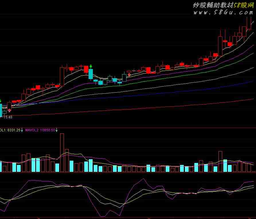 倾情奉献自用指标公式主图MA3,绝无未来,绝无加密!指标、源码、图示、说明第一,作为主图操盘指标公式,具有均线、买卖点、加减仓点、跳空缺口指示等,力求简洁明快。 第二,此指标公式,看长做短,立足于波段和短线滚动操作,特别要注意均线的多头排列状况(这个是决定买卖点和加减仓的最重要指标,然而往往被忽视,大道至简)。 第三,这个主图,配合的附图,我用的就是VOL、MACD、KDJ,我觉得再加上看盘口,已经足足够了。 第四,仓位的资金控制,每个人有每个人的交易系统。怎么样分仓,怎么样买卖加减,适合自己就好。敬请股友指点斧正!谢谢收看! J5:EMA(C,5);J10:EMA(C,10);J20:EMA(C,20);J30:EMA(C,30);J60:EMA(C,60);J120:EMA(C,120);J250:EMA(C,250)COLORRED;DRAWICON(H<REF(L,1),H*1.02,12)COLORGREEN;DRAWICON(L>REF(H,1),L*0.98,11)COLORRED;N:=80; M:=3; VAR1:=(100 - ((90 * (HHV(HIGH,14) - CLOSE)) / (HHV(HIGH,14) - LLV(LOW,14)))); VAR2:=(100 - ((90 * (HHV(HIGH,14) - CLOSE)) / (HHV(HIGH,14) - LLV(LOW,14)))); VAR3:=(100 - MA(((100 * (HHV(HIGH,6) - CLOSE)) / (HHV(HIGH,6) - LLV(LOW,6))),34)); DIR1:=ABS(CLOSE-REF(CLOSE,5)); VIR1:=SUM(ABS(CLOSE-REF(CLOSE,1)),5);ER1:=DIR1/VIR1; CS1:=ER1*(0.8-2/8)+2/8; CQ1:=CS1*CS1; DIR2:=ABS(CLOSE-REF(CLOSE,10)); VIR2:=SUM(ABS(CLOSE-REF(CLOSE,1)),10);ER2:=DIR2/VIR2; CS2:=ER2*(0.8-2/24)+2/24;CQ2:=CS2*CS2; STICKLINE(VAR2 < MA(VAR3,6),LOW,HIGH,0,1),COLORLIBLUE;STICKLINE(VAR2 > MA(VAR3,6),LOW,HIGH,0,1),COLORRED; STICKLINE(((OPEN>CLOSE)AND(VAR2<MA(VAR3,6))),(CLOSE-0.03),OPEN,3.05,0),COLORLIBLUE; STICKLINE(((OPEN<CLOSE)AND(VAR2<MA(VAR3,6))),CLOSE,OPEN,3.05,1),COLORLIBLUE; STICKLINE(((OPEN>CLOSE)AND(VAR2>MA(VAR3,6))),OPEN,(CLOSE-0.03),3.05,0),COLORRED; STICKLINE(((OPEN<CLOSE)AND(VAR2>MA(VAR3,6))),OPEN,CLOSE,3.05,1),COLORRED; DRAWICON(CROSS(VAR2,MA(VAR3,6)),LOW,1);DRAWICON(CROSS(MA(VAR3,6),VAR1),HIGH,2);PT:=REF(H,1)-REF(L,1); CDP:=(REF(H,1)+REF(L,1)+REF(C,1)*2)/4; AH:=CDP+PT;AL:=CDP-PT;NH:=CDP*2-REF(L,1); NL:=CDP*2-REF(H,1);强:IF(AH>REF(C,1)*1.1,REF(C,1)*1.1,AH)NODRAW;阻:IF(NH>强,(强-CDP)*0.618+CDP,NH)NODRAW,COLORBLUE;MM:=IF(AL<REF(C,1)/1.1,REF(C,1)/1.1,AL);撑:IF(NL<M,CDP-(CDP-M)*0.618,NL)NODRAW;底:IF(AL<REF(C,1)/1.1,REF(C,1)/1.1,AL)NODRAW;