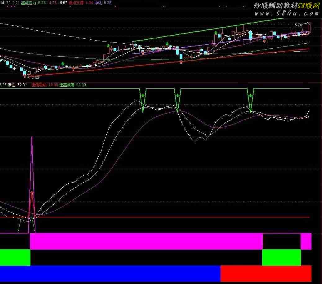 RSV:=(((CLOSE - LLV(LOW,33)) / (HHV(HIGH,33) - LLV(LOW,33))) * 100); SMA(RSV,7,1); SMA(SMA(RSV,7,1),4,1); SMA(SMA(SMA(RSV,7,1),4,1),6,1); (((CLOSE / COST(8)) <= 0.8) * 10); 20,POINTDOT; 80,POINTDOT; K:=SMA(RSV,7,1); D:=SMA(K,3,1); J:=3*K-2*D; 底部:IF(CROSS(J,7.6),60,0),COLORMAGENTA,LINETHICK2; VAR3:=(2*CLOSE+HIGH+LOW)/4; VAR4:=LLV(LOW,34); VAR5:=HHV(HIGH,34); 散户: EMA((VAR3-VAR4)/(VAR5-VAR4)*100,13),LINETHICK1,COLOR00FF99,NODRAW; 新庄: EMA(0.667*REF(散户,1)+0.333*散户,2),LINETHICK1,COLORYELLOW,NODRAW; DRAWICON(CROSS(散户,新庄) AND 散户<22,25,1); DRAWICON(CROSS(新庄,散户) AND 新庄>75,85,2); 逢低吸呐: IF(CROSS(散户,新庄) AND 散户<40,25,10),COLORRED,LINETHICK2; 逢高减磅: IF(CROSS(新庄,散户) AND 新庄>75,75,90),COLORGREEN,LINETHICK2; {KDJ月金} 月K:="KDJ.K#MONTH"(9,3,3); 月J:="KDJ.J#MONTH"(9,3,3); {KDJ周金} 周K:="KDJ.K#WEEK"(9,3,3); 周J:="KDJ.J#WEEK"(9,3,3); {KDJ日金} 日K:="KDJ.K#DAY"(9,3,3); 日J:="KDJ.J#DAY"(9,3,3); 月死叉:STICKLINE(月J<月K,-20,-30,4,0),COLORBLUE; 月金叉:STICKLINE(月J>月K,-20,-30,4,0),COLORRED; 周死叉:STICKLINE(周J<周K,-20,-10,4,0),COLORGREEN; 周金叉:STICKLINE(周J>周K,0,-10,4,0),COLORFF00FF; |