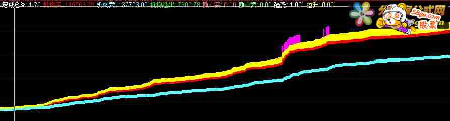 A1:=SUM(IF(CLOSE>REF(CLOSE,1),VOL/CAPITAL*100,IF(CLOSE<REF(CLOSE,1),-VOL/CAPITAL*100,0)),0); 成交额:=V*C/100,NODRAW;{万元} A2:=SUM((IF(((成交额/8>20) AND (CLOSE>(REF(CLOSE,1)))),成交额,0)),0); A3:=SUM((IF(((成交额/8>20) AND (CLOSE<(REF(CLOSE,1)))),成交额,0)),0); A4:=SUM((IF(((成交额/8<20) AND (CLOSE>(REF(CLOSE,1)))),成交额,0)),0); A5:=SUM((IF(((成交额/8<20) AND (CLOSE<(REF(CLOSE,1)))),成交额,0)),0); A6:=((A2+A3)+A4)+A5; A7:=IF((ISLASTBAR),((100*A2)/A6),0); A8:=IF((ISLASTBAR),((100*A3)/A6),0); A9:=IF((ISLASTBAR),((100*A4)/A6),0); A10:=IF((ISLASTBAR),((100*A5)/A6),0); 增减仓%:A1; 机构买:(A2),LINETHICK6,COLORRED; 机构卖:(A3),LINETHICK6,COLORFFFF55; 机构进出:机构买-机构卖,NODRAW; 散户买:(A4),COLOR5555FF;{细红线} 散户卖:(A5),COLOR55FF55;{细绿线} 强势:((100*A2)/A6>50); STICKLINE(强势,机构买*1.02,机构买*1.1,1,0),COLORYELLOW; 拉升:((100*A2)/A6-(100*A3)/A6)>18 AND (100*A2)/A6-(100*A5)/A6>18; STICKLINE(拉升,机构买*1.1,机构买*1.2,1,0),COLORFF00FF; |