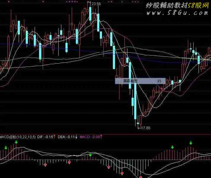 DIF:EMA(CLOSE,SHORT)-EMA(CLOSE,LONG); DEA:EMA(DIF,MID); MACD:(DIF-DEA)*2,COLORSTICK; DRAWICON(REF((DIF-DEA)*2,1)<=LLV((DIF-DEA)*2,N) AND (DIF-DEA)*2>=REF((DIF-DEA)*2,1) AND (DIF-DEA)<0,(DIF-DEA)*2*1.2,1); DRAWICON(REF((DIF-DEA)*2,1)>=HHV((DIF-DEA)*2,N) AND (DIF-DEA)*2<=REF((DIF-DEA)*2,1) AND (DIF-DEA)>0,(DIF-DEA)*2*1.2,2); 常用参数12,26,9,5. |