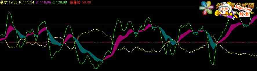 温度:Ema((100*(HHV(HIGH,21)-CLOSE)/(HHV(HIGH,21)-LLV(LOW,21))),12),coloryellow; VAR1:=(HIGH+LOW+CLOSE*2)/4; VAR2:=EMA(VAR1,21); VAR3:=STD(VAR1,21); VARA:=(VAR1-VAR2)*100/VAR3; K:(EMA(VARA,21)+100)/2-3; D:SMA(K,5,1); J:3*K-2*D; DRAWBAND(K,RGB(150,0,100),D,RGB(256,96,96)); 恒温线:50,COLORred,POINTDOT; |