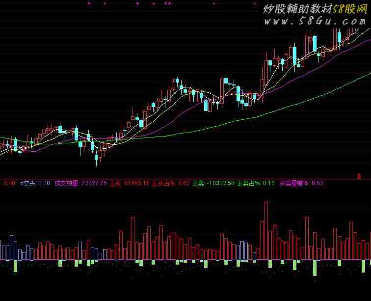 ■多头:0,COLOR0000FF;STICKLINE((CLOSE > MA(CLOSE,30)),0,VOL,3,1),COLOR0000FF; □空头:0,COLORFF937F;STICKLINE((CLOSE < MA(CLOSE,30)),0,VOL,3,1),COLORFF937F; VAR0:=VOL/((HIGH-LOW)*2-ABS(CLOSE-OPEN)); 成交总量:VOL,POINTDOT; 主买:IF(CLOSE>OPEN,VAR0*(HIGH-LOW),IF(CLOSE<OPEN,VAR0*((HIGH-OPEN)+(CLOSE-LOW)),VOL/2)),COLORRED,POINTDOT; VAR1:=(VOL / (((HIGH - LOW) * 2) - ABS((CLOSE - OPEN)))); 买盘:=IF((CLOSE > OPEN),(VAR1 * (HIGH - LOW)),IF((CLOSE < OPEN),(VAR1 * ((HIGH - OPEN) + (CLOSE - LOW))),(VOL / 2))); 主买占%:买盘/100000,COLORRED,NODRAW; 主卖:IF(CLOSE>OPEN,0-VAR0*((HIGH-CLOSE)+(OPEN-LOW)),IF(CLOSE<OPEN,0-VAR0*(HIGH-LOW),0-VOL/2)),COLOR00FF00,POINTDOT; 卖盘:=IF((CLOSE > OPEN),(0 - (VAR1 * ((HIGH - CLOSE) + (OPEN - LOW)))),IF((CLOSE < OPEN),(0 - (VAR1 * (HIGH - LOW))),(0 - (VOL / 2)))); 主卖占%:-卖盘/100000,COLOR00FF00,POINTDOT,NODRAW; 震动调整:=(买盘 + 卖盘); STICKLINE((震动调整 < 1),1,震动调整,3,0),COLOR70DB93; 买卖量差%:((买盘)+(卖盘))/100000,COLORFF00FF; STICKLINE((买卖量差% < 0),0,买卖量差%,3,0),COLORWHITE,LINETHICK0; VAR2:=(HIGH - LOW); VAR3:=ABS((OPEN - CLOSE)); |
