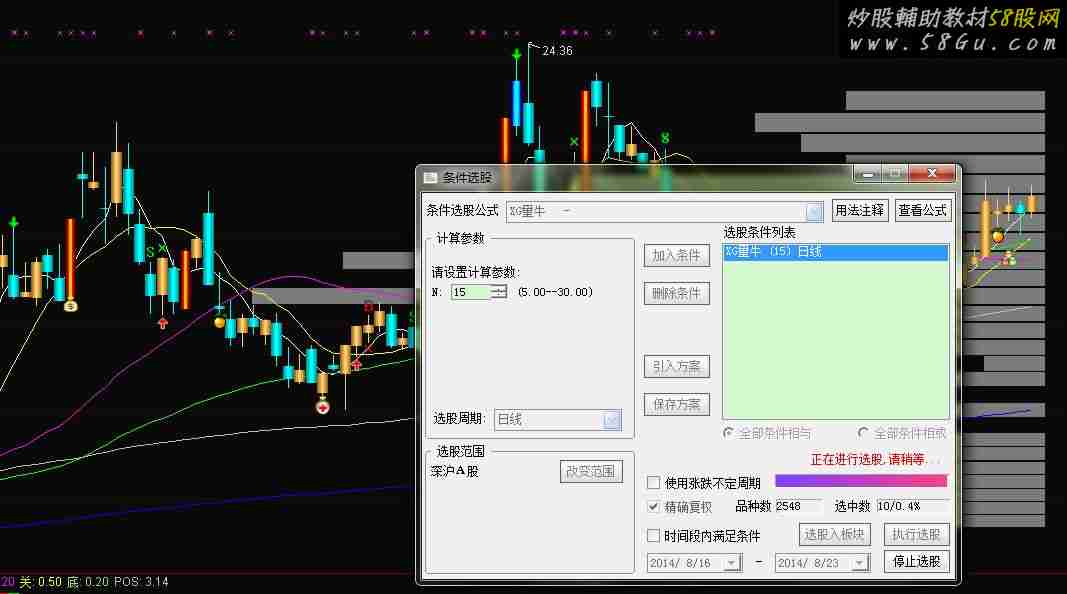 今天看到我5量擒牛指标(不出所料,又是完全加密),便下了一个看看,选完股一看,好家伙,一共73个。 一时手痒,便优化了一下选股结果,编了这个也是完全加密的我5量擒牛选股指标。默认参数下,选出的结果是10个:泰和集团、博实股份、华虹计通、白云山、申达股份、欧亚集团、益民集团、界龙实业、中海海盛、唐山港说明: 1.必须下载安装我5量擒牛后本指标才有效; 2.我给出的参数是:最小5,最大30,默认15;值越小信号越好。实际上,现在用小于10的参数很难选出股票来。