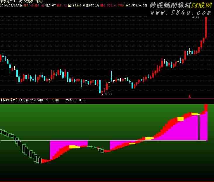 DRAWGBK(C>0, RGB(40,120,20),RGB(00,00,00),0,'11',1);T:0, POINTDOT;VAR2:=MA(CLOSE, 5);VAR3:=MA(CLOSE, 10);VAR4:=MA(CLOSE, 20);VAR5:=MA(CLOSE, 30);VAR6:=(VAR2+VAR3+VAR4+VAR5)/4;VAR7:=(VAR6-REF(VAR6, 周期))/REF(VAR6, 周期)*100;VAR8:=(VAR6-REF(VAR6, 周期))/REF(VAR6, 周期)*100;VAR9:=EMA(VAR7, 过滤);反转:STICKLINE(VAR9>1*REF(VAR9, 1), VAR7, 0, 5, 0), COLOREE00EE;持股:STICKLINE(VAR7>1*REF(VAR7, 1), VAR7, VAR9, 5, 0), COLORRED;持币:STICKLINE(VAR7<1*REF(VAR7, 1), VAR7, VAR9, 5, 1), COLORGREEN;洗盘:STICKLINE(VAR7<1*REF(VAR7, 1) AND VAR9>1*REF(VAR9, 1), VAR7, VAR9, 10, 0), COLOR00EEFF;VAR10:=(CLOSE-MA(CLOSE, 58))/MA(CLOSE, 58)*100;VAR11:=(VAR10>1*REF(VAR10, 1) AND VAR10<选股 AND VAR10>抄底)*1.5;VAR12:=VOL/CAPITAL*100;VAR13:=LLVBARS(LOW, 50);VAR14:=SUM(VOL, VAR13);VAR15:=HHVBARS(HIGH, 50);VAR16:=SUM(VOL, VAR15);VAR17:=(CLOSE-REF(OPEN, VAR15))/REF(OPEN, VAR15)*100;VAR18:=VAR16/CAPITAL*100;VAR19:=(CLOSE-REF(OPEN, VAR13))/REF(OPEN, VAR13)*100;VAR20:=VAR14/CAPITAL*100;VAR21:=MA(CLOSE, 3);VAR22:=REF(CLOSE, 2)*0.865;VAR23:=REF(CLOSE, 13)*0.772;VAR24:=MIN(VAR22, VAR23);VAR25:=MA(CLOSE, 13);抄底王:IF((CLOSE-VAR24)/CLOSE<0.030 AND VAR17<(-35) AND SUM(VAR12, 5)/5<1.800, 1, 0)*10, COLORWHITE;DRAWTEXT(抄底王, 抄底王, ' 成功率 90.22 %,共发出指示1289 次.底 追 '){,COLORFFAA00};VAR26:=(CLOSE-REF(CLOSE, 1))/REF(CLOSE, 1)*100;VAR27:=(EMA(CLOSE, 12)-EMA(CLOSE, 26))*100;VAR28:=EMA(VAR27, 9);VAR29:=2*(VAR27-VAR28);DRAWTEXT(VAR27<(-50) AND VAR26>7 AND VAR27<VAR28, (-10), '底'), COLORWHITE;DRAWTEXT(VAR27<(-50) AND VAR26>7 AND VAR27>=VAR28, 5, '追'), COLORWHITE;STICKLINE(VAR27<(-50) AND VAR26>7, 0,(-10), 5, 0), COLORFFFF66;