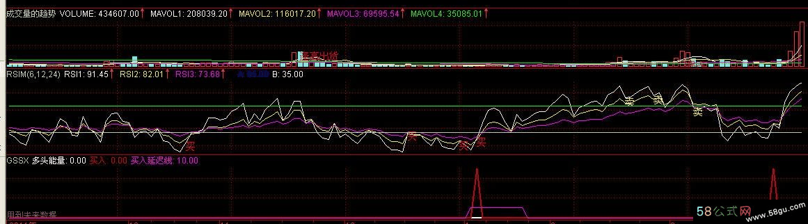 VAR2:=TROUGHBARS(3,15,1)<10; VAR3:=PEAKBARS(3,15,1)<10; VAR4:=IF(VAR2=1,50,0); VAR5:=IF(VAR3=1,50,0); 底部:=IF(VAR4=50,10,0); 多头能量:0,COLORWHITE,LINETHICK2; 买入:IF(底部=10 AND REF(底部,1)=10 AND REF(底部,2)=0,50,0),COLOR0000CC,LINETHICK2; 买入延迟线:底部,LINETHICK1 ,; |
