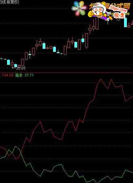 VAR1:=REF(LOW,1);VAR2:=SMA(ABS(LOW-VAR1),3,1)/SMA(MAX(LOW-VAR1,0),3,1)*100;VAR3:=EMA(IF(CLOSE*1.2,VAR2*10,VAR2/10),3);VAR4:=LLV(LOW,38);VAR5:=HHV(VAR3,38);VAR6:=IF(LLV(LOW,90),1,0);VAR7:=EMA(IF(LOW<=VAR4,(VAR3+VAR5*2)/2,0),3)/618*VAR6;底部吸筹: STICKLINE(VAR7,0,VAR7,6,1),COLORRED ;V1:=LLV(H,240);飞鱼:100*(C-V1)/V1,COLORRED,LINETHICK1;V2:=HHV(H,240);海洋:100*(V2-C)/C,COLORGREEN,LINETHICK1;V3:=SUM(VOL,5)/CAPITAL;CYF5:=100-(100/(1+V3));