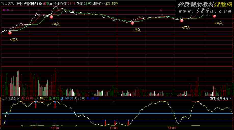 VAR1:=(CLOSE-MA(CLOSE,21))/MA(CLOSE,21)*100;VAR2:=(CLOSE-LLV(LOW,43))/(HHV(HIGH,43)-LLV(LOW,43))*100;VAR3:=SMA(VAR2,2,1);天:100+(-ABS(VAR1)),COLORRED;下:SMA(VAR3,2,1);无:ABS(VAR1),COLORGREEN;敌:50,COLORFFAA00,LINETHICK3;A:80;B:20;买:STICKLINE(CROSS(下,无),3,20,2,0),COLORRED,LINETHICK1;STICKLINE(CROSS(下,无),20,25,2,0),COLORFF9900,LINETHICK1;DRAWTEXT(CROSS(下,无),30,' '),COLORFFFFCC;卖:STICKLINE(CROSS(下,天),70,90,2,0),COLORRED,LINETHICK1;STICKLINE(CROSS(下,天),90,99,2,0),COLORFF9900,LINETHICK1;DRAWTEXT(CROSS(下,天),70,' '),COLORFFFFCC; |