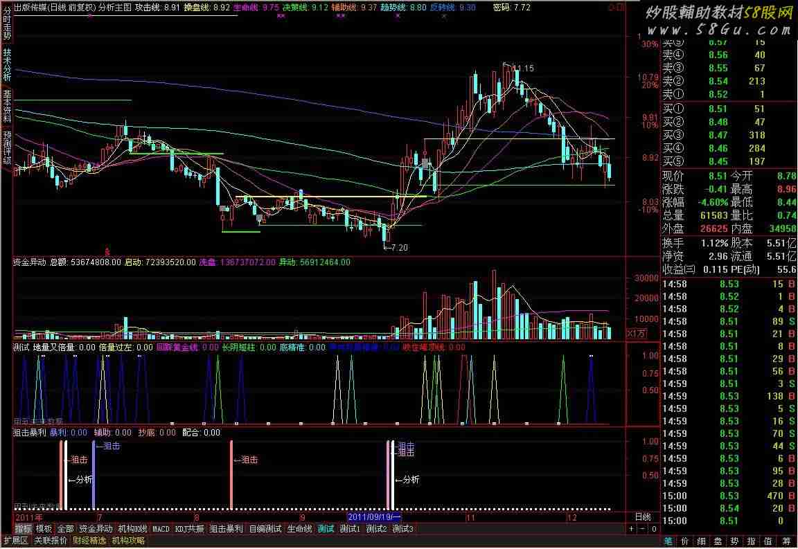 {1.百日低量群} 百日地量:= V=LLV(V,100) AND V>0; 倍量:= VOL>=REF(V,1)*1.9 AND C>REF(C,1); 地量又倍量:COUNT(百日地量,5)>=1 AND COUNT(倍量,1)>=1;{2.倍量过左峰} N:=20; 左峰高:=REF(HHV(C,N),1); 倍量过左:REF(COUNT(C<左峰高,2)=2,1) AND C>左峰高 AND C>O AND VOL/REF(VOL,1)>=1.9;{3.回踩黄金线} {1.黄金柱} JJ:=(3*C+H+L+O)/6; VAR1:=DMA(JJ,0.2); {VAR1:=(8*JJ+7*REF(JJ,1)+6*REF(JJ,2)+5*REF(JJ,3) +4*REF(JJ,4)+3*REF(JJ,5)+2*REF(JJ,6)+REF(JJ,8))/36;} TJ1:=VOL=HHV(VOL,10) AND VOL>2*REF(VOL,1) AND CLOSE>VAR1 AND C>REF(C,1); LJL:=FILTER(TJ1,3); 黄金线:=REF(LOW,BARSLAST(LJL)); 黄金柱:=FILTER(TJ1,3); {2.倍量过左峰} SR1:=REF(HIGH,10)=HHV(HIGH,2*10+1); SR2:=FILTER(SR1,10); SR3:=BACKSET(SR2,10+1); HD:=FILTER(SR3,10); 前高:=REF(H,BARSLAST(HD)); {倍量:=VOL/REF(VOL,1)>=2 AND COUNT(CLOSE>OPEN,1) OR LOW>REF(HIGH,1) AND COUNT(OPEN>CLOSE,1) AND VOL/REF(VOL,1)>=2;} 突破前高:=CROSS(C,前高); 倍量过左峰:= 突破前高 AND 倍量; {3.凹口起柱} T7:=REF(VOL,6)/REF(VOL,7)>=2; T6:=REF(VOL,5)/REF(VOL,6)>=2; T5:=REF(VOL,5)/REF(VOL,4)>=1.5; T4:=REF(VOL,4)/REF(VOL,3)>=1.5; T3:=REF(VOL,2)/REF(VOL,3)>=1.5; T1:=V/REF(VOL,1)>2; T0:=C>O AND C>REF(C,1); 凹口起柱:= T7 AND T1 AND T0 OR T6 AND T1 AND T0 OR T5 AND T1 AND T0 OR T4 AND T1 AND T0 OR T3 AND T1 AND T0 ; {凹口起柱} AKQZ:= 黄金柱 AND 凹口起柱; {4.前高低位} X:=21; TTY:=H; AAT:=REF(TTY,X)=HHV(TTY,2*X+1); BBT:=FILTER(AAT,X); CCT:=BACKSET(BBT,X+1); HD10T:=FILTER(CCT,X); 前期高位:=REF(H,BARSLAST(HD10T)); {突破前高} TPQG:= 黄金柱 AND 倍量过左峰 AND C>前期高位; {选股} 回踩黄金线: (COUNT(TPQG,10) OR COUNT(AKQZ,10)) AND COUNT(CROSS(黄金线*1.01,L),3)>0 AND L>=黄金线 AND C>REF(C,1) AND REF(C,2)>REF(C,1) AND COUNT(LJL,3)=0;{5.长阴短柱} 长阴短柱: C/REF(C,1)<0.95 AND V<HHV(V,30)/1.9;{6.1 底同向精准} NN:=3; LL0:=0; L0:=LL0/100; L1:=ABS(L-REF(L,1))<=L0; L2:=ABS(L-REF(L,2))<=L0; L3:=ABS(L-REF(L,3))<=L0; L4:=ABS(L-REF(L,4))<=L0; L5:=ABS(L-REF(L,5))<=L0; 精准线:=L1 OR L2 OR L3 OR L4 OR L5; 底精准: FILTER(精准线,NN),COLORCYAN;{6.2 异向并肩精准线} 异向并肩精准: MIN(O,C)=REF(MAX(O,C),1) ;{4.咬住峰顶线} FDX:=PEAK(1,10,1);{REF(HHV(H,60),5)};{上一波峰值} TJ:=BETWEEN(MA(H,3),FDX*0.997,FDX*1.02); 咬住峰顶线: COUNT(TJ,3)>=2,COLORRED;