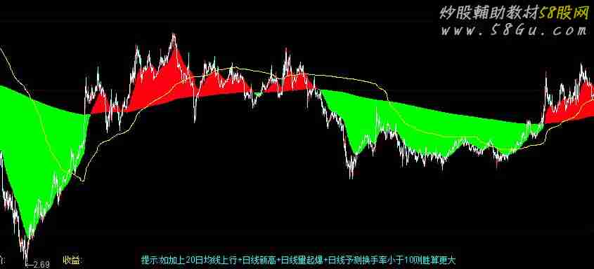 分时线显示出起爆点的时间 价格和最后收盘时的收益 该公式导入简单一看就明白 图片就会发一个 请大家多多谅解MA1:=EMA(C,30);MA2:=EMA(C,900);STICKLINE((MA1>MA2),MA1,MA2,0,0),COLOR1000FF;STICKLINE((MA1<MA2),MA1,MA2,0,0),COLOR00FF00;GJ:C,COLORWHITE;JJ:SUM(C*V,FROMOPEN)/SUM(V,FROMOPEN),COLORYELLOW,LINETHICK1.5;均量:=MA(V,5);量连增:=均量>REF(均量,1) AND REF(均量,1)>REF(均量,2);价连涨:=C>=REF(C,1) AND REF(C,1)>REF(C,2);价量线上:=C>JJ AND V>均量;倍量:=V>=REF(V,1)*2 ;价新高:=C>=HHV(C,FROMOPEN);量新高:=V>=HHV(V,FROMOPEN);限幅:=C/DYNAINFO(3)<=1.02;起爆:=FILTER(量连增 AND 价连涨 AND 价量线上 AND 倍量 AND 价新高 AND 量新高 AND 限幅,20);DRAWTEXT(起爆,C,'起爆'),COLOR00FFFF;DRAWICON(起爆,C,1);STICKLINE(起爆,C,JJ,1,0),COLOR1000FF;VV:=BARSSINCE(起爆);起爆价:=REF(C,VV);起爆时间:=REF(TIME/10000,VV);收益:=(DYNAINFO(7)-起爆价)/起爆价*100;DRAWICON(VV>=2,起爆价,13);DRAWTEXT_FIX(1,0,1,0,'起爆时间:'),COLOR00FFFF;DRAWNUMBER_FIX(1,0.06,1,0,CONST(起爆时间)),COLOR00FFFF;DRAWTEXT_FIX(1,0.12,1,0,'起爆价:'),COLOR00FFFF;DRAWNUMBER_FIX(1,0.17,1,0,CONST(起爆价)),COLOR00FFFF;DRAWTEXT_FIX(1,0.24,1,0,'收益:'),COLOR00FFFF;DRAWNUMBER_FIX(1,0.28.06,1,0,CONST(收益)),COLOR00FFFF;DRAWTEXT_FIX(ISLASTBAR,0.35,1,0,'提示:如加上20日均线上行+日线新高+日线量起爆+日线予测换手率小于10则胜算更大'),COLORFFFF00; |
