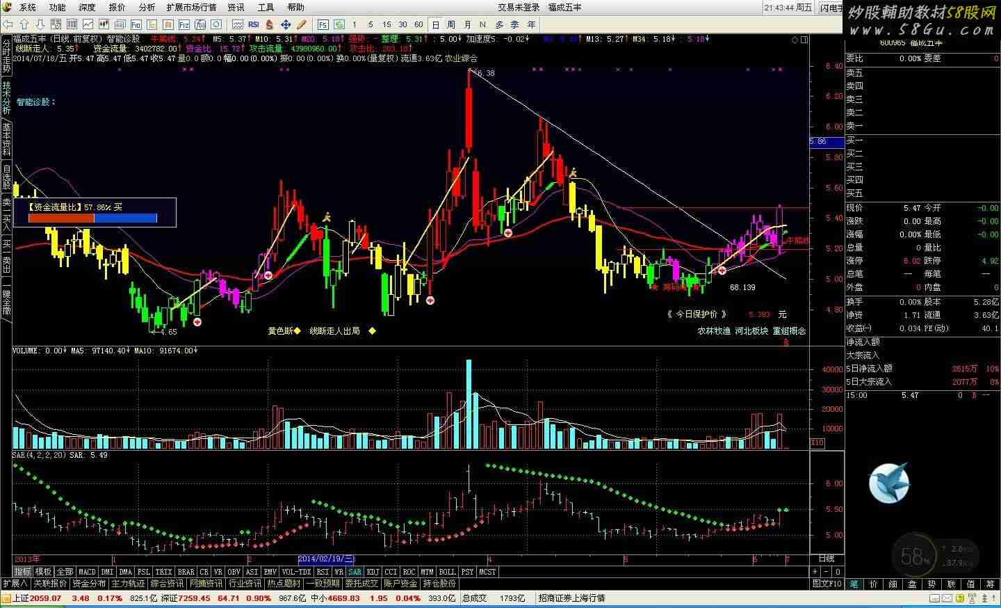 DRAWGBK(1,RGB(0,0,0),RGB(0,0,0),0,'448',0);DRAWGBK(C>0, RGB(0,0,20),RGB(00,00,00),0,'0',1);N:=5;M1:=10;M2:=20;牛熊线:(EMA(CLOSE,30)+EMA(CLOSE,72))/2,LINETHICK2,COLORRED;DRAWTEXT(ISLASTBAR,牛熊线,'牛熊线'),COLORRED;M5:MA(CLOSE,N),COLORWHITE,LINETHICK0;M10:MA(CLOSE,M1),COLORYELLOW;M20:MA(CLOSE,M2),COLORFF00FF;VAR1:=IF(CLOSE>OPEN,CLOSE,OPEN);VAR2:=MEMA(CLOSE,5);VAR3:=ATAN((VAR2/REF(VAR2,1)-1)*100);VAR4:=IF(VAR3>0,VAR3,VAR3);VAR5:=(CLOSE/REF(CLOSE,1)-1)*100;VAR6:=VAR5<1.5 AND VAR5>-1.5;强势:IF(VAR4>=REF(VAR4,1) AND VAR4>=0,M10,DRAWNULL),COLORRED,LINETHICK4;整理:IF(VAR4<REF(VAR4,1) AND VAR4>0,M10,DRAWNULL),COLORGREEN,LINETHICK4;A1:=REF(H,8)=HHV(H,2*8+1);B1:=FILTER(A1,8);C1:=BACKSET(B1,8+1);D1:=FILTER(C1,8);{高点}R11:=BACKSET(ISLASTBAR,BARSLAST(D1)+1); S11:=R11>REF(R11,1);DRAWLINE(D1,H,S11,H,1),COLORWHITE;A2:=REF(L,8)=LLV(L,2*8+1);B2:=FILTER(A2,8);C2:=BACKSET(B2,8+1);D2:=FILTER(C2,8);{低点}AA05:=MA(C,5),COLOR0099CC;五日乖离率:=(C-AA05)/AA05*100;BB05:=ATAN((AA05/REF(AA05,1)-1)*100)*180/3.1416;速度5:=SMA(EMA((AA05-REF(AA05,1))/REF(AA05,1),3)*100,3,1);加速度5:EMA((速度5-REF(速度5,1)),3),NODRAW;AA10:=MA(C,10);AA20:=MA(C,20);BB10:=ATAN((AA10/REF(AA10,1)-1)*100)*180/3.1416;AA30:=MA(C,30);三拾日乖离率:=(C-AA30)/AA30*100;VAR11:=(AA20-AA30)>REF((AA20-AA30),1)AND AA20>REF(AA20,1) AND AA30>REF(AA30,1);VAR22:=(AA30-AA20)<REF((AA30-AA20),1) AND AA20<REF(AA20,1) ANDAA30<REF(AA30,1);BB30:=ATAN((AA30/REF(AA30,1)-1)*100)*180/3.1416;强势狙击:=FILTER(BB30>30 AND BB10>45 ANDCROSS(BB05,60),10);加仓:=FILTER(COUNT(CROSS(BB05,30),5)>=1 ANDAA05>REF(AA05,1) AND 三拾日乖离率>REF(三拾日乖离率,1) ANDAA10>REF(AA10,1)AND 加速度5>REF(加速度5,1) AND 速度5>REF(速度5,1) ,10) ;清仓:=FILTER(COUNT(CROSS(30,BB05),5)>=1 AND (C>AA30 OR O>AA30) ANDAA05<REF(AA05,1) AND 三拾日乖离率<REF(三拾日乖离率,1) ANDAA10<REF(AA10,1),10);DRAWICON(加仓 ,LOW*0.99,23);DRAWICON(清仓 ,HIGH*1.01,15);DRAWICON(强势狙击 ,LOW*0.99,13);HH0:=HHV(H,N);LL0:=LLV(L,N);MM0:=CONST((HH0+LL0)*0.5);S01:=CONST(IF(REF(C,N-15)>MM0,1.00,-0.04));S02:=CONST(IF(REF(C,N-15)>MM0,-1,1));S1:=IF(FINDSTR(EXTERNSTR(0,13),'万元'),S01+(0.04*S02),S01);S2:=IF(FINDSTR(EXTERNSTR(0,12),'。'),S1+(0.04*S02),S1);S3:=IF(FINDSTR(EXTERNSTR(0,8),'公告'),S2+(0.04*S02),S2);S4:=IF(FINDSTR(EXTERNSTR(0,10),','),S3+(0.04*S02),S3);S5:=IF(FINDSTR(EXTERNSTR(0,15),'-'),S4+(0.04*S02),S4);S6:=IF(FINDSTR(EXTERNSTR(0,1),','),S5+(0.04*S02),S5);S7:=IF(FINDSTR(EXTERNSTR(0,14),'-'),S6+(0.04*S02),S6);S8:=IF(FINDSTR(EXTERNSTR(0,11),'-'),S7+(0.04*S02),S7);S9:=IF(FINDSTR(EXTERNSTR(0,9),'-'),S8+(0.04*S02),S8);M:=13;M3:MA(CLOSE,3),COLORRED,LINETHICK;M13:MA(CLOSE,13),COLORRED,LINETHICK;M34:MA(CLOSE,34),COLORRED,LINETHICK;X:=BARSLAST(REF(CROSS(C,MA(C,120)),1)) AND CROSS(MA(C,20),MA(C,120));IF(M34<REF(M34,1),M34,DRAWNULL),COLORGREEN,LINETHICK;STICKLINE(M3>=M13 AND M34>=REF(M34,1) ,H ,L ,0.1 ,0 ),COLORRED;STICKLINE(M3>=M13 AND M34>=REF(M34,1) AND C>=O ,O ,C ,3 ,1 ),COLORRED;STICKLINE(M3>=M13 AND M34>=REF(M34,1) AND C<O ,O ,C ,3 ,0 ),COLORRED;STICKLINE(M3<M13 AND M34>=REF(M34,1) ,H ,L ,0.1 ,0 ),COLORYELLOW;STICKLINE(M3<M13 AND M34>=REF(M34,1) AND C>=O ,O ,C ,3 ,1 ),COLORYELLOW;STICKLINE(M3<M13 AND M34>=REF(M34,1) AND C<O ,O ,C ,3 ,0 ),COLORYELLOW;STICKLINE(M3<M13 AND M34<REF(M34,1) ,H ,L ,0.1 ,0 ),COLORGREEN;STICKLINE(M3<M13 AND M34<REF(M34,1) AND C>=O ,O ,C ,3 ,1 ),COLORGREEN;STICKLINE(M3<M13 AND M34<REF(M34,1) AND C<O ,O ,C ,3 ,0 ),COLORGREEN;STICKLINE(M3>=M13 AND M34<REF(M34,1) ,H ,L ,0.1 ,0 ),COLORMAGENTA;STICKLINE(M3>=M13 AND M34<REF(M34,1) AND C>=O ,O ,C ,3 ,1 ),COLORMAGENTA;STICKLINE(M3>=M13 AND M34<REF(M34,1) AND C<O ,O ,C ,3 ,0 ),COLORMAGENTA;STICKLINE(ISLASTBAR,HHV(C,5),HHV(C,5),218,1)COLORRED;STICKLINE(ISLASTBAR,HHV(C,5)*0.95,HHV(C,5)*0.95,218,1)COLORRED; Z1:=STRCAT(HYBLOCK,' ');Z2:=STRCAT(Z1,DYBLOCK);Z3:=STRCAT(Z2,' ');DRAWTEXT_FIX(ISLASTBAR,1,1.1,8,STRCAT(Z3,GNBLOCK)),COLORFFFF80;DRAWTEXT_FIX(1,0.8,0.8,0,'★ 筹码峰 ★'),COLORRED;DRAWNUMBER_FIX(1,0.9,0.8,0,CONST(WINNER(C)*100));AA:=(REF(CLOSE,1)+REF(CLOSE,2)+OPEN)/3;DRAWTEXT_FIX(CURRBARSCOUNT=1,0.9,0.9,1,'《 今日保护价 》'),LINETHICK2,COLOR00FFFF;DRAWNUMBER_FIX(CURRBARSCOUNT=1,0.95,0.9,1,AA),COLORRED;DRAWTEXT_FIX(CURRBARSCOUNT=1,0.96,0.9,0,'元');线断走人:IF(ZIG(MA((H+L)/2,3),3)>REF(ZIG(MA((H+L)/2,3),3),1),ZIG(MA((H+L)/2,3),3),DRAWNULL),COLORYELLOW,LINETHICK2;DRAWTEXT_FIX(1,0.32,2,0,'黄色断◆ 线断走人出局 ◆'),COLORYELLOW;DRAWRECTREL(0,480,205,589,RGB(10,1,30));资金流入:=SUM(IF(C>REF(C,1),V,0),FROMOPEN),NODRAW;资金流出:=-SUM(IF(C<REF(C,1),V,0),FROMOPEN),NODRAW;资金出入:=资金流入+资金流出,NODRAW;DRAWBAND(资金出入,RGB(150,0,150),0,RGB(0,100,0)),NODRAW;资金流量:资金出入,NODRAW;资金比:资金出入/SUM(V,FROMOPEN)*100,NODRAW;资金流量比:=IF(资金比>=0,(资金比+100)/2,100-ABS((资金比-100)/2)),NODRAW;攻击量:=((HSL*0.50+REF(HSL,1)*0.33)+(REF(HSL,2)*0.17))*SUM(C,FROMOPEN)/FROMOPEN,NODRAW; 攻击量A:=SUM(IF(C>REF(C,1),攻击量*V,0),FROMOPEN),NODRAW; 攻击量B:=-SUM(IF(C<REF(C,1),攻击量*V,0),FROMOPEN),NODRAW; 攻击流量:攻击量A+攻击量B,NODRAW; NOTEXT攻击线:攻击流量,NODRAW; 攻击比:攻击流量/SUM(V,FROMOPEN)*100,COLORRED,NODRAW;资金攻击度:=IF(攻击比>=0,(攻击比+50),100-ABS((攻击比-50)));{STICKLINE(资金流量A>0,资金流量A,0,1,0),COLOR0000FF; STICKLINE(资金流量B<0,资金流量B,0,1,0),COLORFF0000;};DRAWRECTREL(20,570,180,540,RGB(0,75,200));DRAWRECTREL(20,570,30,540,RGB(0,250,50));DRAWRECTREL(20,570,15+CONST(资金流量比*150/100),540,RGB(200,50,0));DRAWTEXT_FIX(1,0.0,0.5,0,STRCAT(STRCAT(' 【资金流量比】',CON2STR(资金流量比,2)),'%买')),COLORYELLOW;DRAWTEXT_FIX(1,5.0,0.9,0,EXTERNSTR(0,5))COLOR0000FF;DRAWTEXT_FIX(1,0.0,0.2,0,EXTERNSTR(0,5))COLOR0000FF;DRAWTEXT_FIX(C>0,0.004,0.11,0,STRCAT('智能诊股:',EXTERNSTR(0,2))),COLORFFFF00,LINETHICK2; |