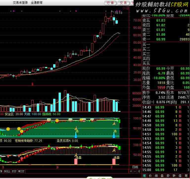 资金密码:SUM(V/CAPITAL*100,5),COLORRED,NODRAW; 势能:SMA(((CLOSE-LLV(LOW,28))/(HHV(HIGH,28)-LLV(LOW,28))*100),3,1) ,COLORRED,LINETHICK2; STICKLINE(势能>50,势能,50,2,1),COLOR32329B; STICKLINE(50>势能,势能,50,2,1),COLOR326400; 势能A:=IF(势能>50, 势能,DRAWNULL), COLORRED; 圣灵石J:=(CLOSE-LLV(CLOSE,3))/(HHV(CLOSE,3)-LLV(CLOSE,3))*100; 圣灵石K:=SMA(圣灵石J,2,1); 圣灵石L:=SMA(圣灵石K,2,1); 圣灵石G:=(HIGH+LOW+CLOSE)/3; 圣灵石E:=(圣灵石G-MA(圣灵石G,7))/(0.015*AVEDEV(圣灵石G,7)); 圣灵石H:=EMA(CLOSE,5)-EMA(CLOSE,18),COLORWHITE,LINETHICK2; 圣灵石I:=EMA(圣灵石H,3)COLORYELLOW,LINETHICK2; 圣灵石F:=2*(圣灵石H-圣灵石I); 圣灵石B:=IF(圣灵石K>圣灵石L AND 圣灵石E>0 AND 圣灵石H>圣灵石I AND 圣灵石F>0,1,0); STICKLINE(圣灵石B=1,50,50,6,0),COLORYELLOW; STICKLINE(圣灵石B=0,50,50,6,0),COLORCYAN; 圣灵石:=SMA(势能,3,1),COLORYELLOW, LINETHICK2; 正动能:IF( 势能>圣灵石,圣灵石,DRAWNULL), COLORYELLOW, LINETHICK2; 负动能:IF( 势能<圣灵石,圣灵石,DRAWNULL) ,COLORWHITE,LINETHICK3; 持股:圣灵石H>圣灵石I,COLORRED; N3:=BARSLAST(CROSS(C,MA(C,5))); N4:=BARSLAST(CROSS(MA(C,5),C)); 攻击:IF(N3<N4,N3+1,0),COLORYELLOW,LINETHICK2,NODRAW; 持币:圣灵石H<圣灵石I OR 圣灵石H=圣灵石I,COLORGREEN; 选股:持股 AND 攻击; 顶:90,COLORYELLOW; DRAWICON(CROSS(势能,圣灵石),圣灵石,1); DRAWICON(CROSS(势能,顶),顶,2); AR圣灵石1:=(HHV(HIGH,9)-CLOSE)/(HHV(HIGH,9)-LLV(LOW,9))*100-70; AR圣灵石2:=SMA(AR圣灵石1,9,1)+100; AR圣灵石3:=(CLOSE-LLV(LOW,9))/(HHV(HIGH,9)-LLV(LOW,9))*100; AR圣灵石4:=SMA(AR圣灵石3,3,1); AR圣灵石5:=SMA(AR圣灵石4,3,1)+100; AR圣灵石6:=AR圣灵石5-AR圣灵石2; 密制传奇趋势:IF(AR圣灵石6>45,AR圣灵石6-45,0),COLOR00FFFF,LINETHICK3; 圣灵石2Q:=REF(LOW,1); 圣灵石3Q:=SMA(ABS(LOW-圣灵石2Q),3,1)/SMA(MAX(LOW-圣灵石2Q,0),3,1)*100; 圣灵石4Q:=EMA(IF(CLOSE*1.3,圣灵石3Q*10,圣灵石3Q/10),3); 圣灵石5Q:=LLV(LOW,30); 圣灵石6Q:=HHV(圣灵石4Q,30); 圣灵石7Q:=IF(MA(CLOSE,58),1,0); 圣灵石8Q:=EMA(IF(LOW<=圣灵石5Q,(圣灵石4Q+圣灵石6Q*2)/2,0),3)/999*圣灵石7Q; 圣灵石A:=IF(圣灵石8Q>100,100,圣灵石8Q); STICKLINE(REF(密制传奇趋势,1)< 密制传奇趋势, 密制传奇趋势,REF(密制传奇趋势,1),5,0),COLOR000033; STICKLINE(REF(密制传奇趋势,1)< 密制传奇趋势, 密制传奇趋势,REF(密制传奇趋势,1),4,0),COLOR000055; STICKLINE(REF(密制传奇趋势,1)< 密制传奇趋势, 密制传奇趋势,REF(密制传奇趋势,1),3,0),COLOR000077; STICKLINE(REF(密制传奇趋势,1)< 密制传奇趋势, 密制传奇趋势,REF(密制传奇趋势,1),2,0),COLOR000099; STICKLINE(REF(密制传奇趋势,1)< 密制传奇趋势, 密制传奇趋势,REF(密制传奇趋势,1),1.5,0),COLOR0000BB; STICKLINE(REF(密制传奇趋势,1)< 密制传奇趋势, 密制传奇趋势,REF(密制传奇趋势,1),1,0),COLOR0000DD; STICKLINE(REF(密制传奇趋势,1)> 密制传奇趋势, 密制传奇趋势,REF(密制传奇趋势,1),5,0),COLOR003300; STICKLINE(REF(密制传奇趋势,1)> 密制传奇趋势, 密制传奇趋势,REF(密制传奇趋势,1),4,0),COLOR005500; STICKLINE(REF(密制传奇趋势,1)> 密制传奇趋势, 密制传奇趋势,REF(密制传奇趋势,1),3,0),COLOR007700; STICKLINE(REF(密制传奇趋势,1)> 密制传奇趋势, 密制传奇趋势,REF(密制传奇趋势,1),2,0),COLOR009900; STICKLINE(REF(密制传奇趋势,1)> 密制传奇趋势, 密制传奇趋势,REF(密制传奇趋势,1),1,0),COLOR00DD00; 圣灵石顶A:CROSS(82,RSI),COLORYELLOW; STICKLINE(圣灵石顶A,圣灵石顶A ,30,4,0 ),COLOR5555FF; STICKLINE(圣灵石顶A,圣灵石顶A ,30,3,0 ),COLOR7777FF; STICKLINE(圣灵石顶A,圣灵石顶A ,30,2,0 ),COLOR9999FF; 圣灵石1:=(C+L+H)/3; 圣灵石2:=EMA(圣灵石1,6); 圣灵石3:=EMA(圣灵石2,5); 圣灵石Y:=CROSS(圣灵石2,圣灵石3); DRAWICON(圣灵石Y,(LOW *1),1); 圣灵石V:=SMA(MAX(CLOSE-REF(C,1),0),6,1)/SMA(ABS(CLOSE-REF(C,1)),6,1)*100; DRAWICON(CROSS(82,圣灵石V),HIGH,15); DRAWTEXT(CROSS(82,圣灵石V),35,'洗盘'),COLORYELLOW; |