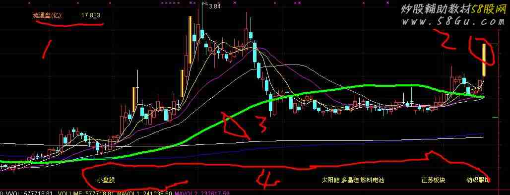 SZT:=(C-REF(C,1))*100/REF(C,1)>=(5-0.5/REF(C,1)) AND (C-REF(C,1))*100/REF(C,1)<=(5+0.5/REF(C,1)) AND H=C AND (NAMELIKE('ST')=1 OR NAMELIKE('*ST')=1 OR NAMELIKE('S*ST')=1); ZT:=(C-REF(C,1))*100/REF(C,1)>=(10-1/REF(C,1)) AND (C-REF(C,1))*100/REF(C,1)<=(10+1/REF(C,1)) AND H=C; STICKLINE(SZT,CLOSE,OPEN,0.8,0),COLORYELLOW; STICKLINE(ZT,CLOSE,OPEN,0.8,0),COLORYELLOW; MA1:MA(CLOSE,M1); MA2:MA(CLOSE,M2); MA3:MA(CLOSE,M3); MA4:MA(CLOSE,M4),LINETHICK4; MA5:MA(CLOSE,M5); MA6:MA(CLOSE,M6); MA7:MA(CLOSE,M7); 所属行业:DRAWTEXT_FIX(ISLASTBAR ,0.94,1,0,HYBLOCK),COLORYELLOW;所属地域:DRAWTEXT_FIX(ISLASTBAR ,0.90,1,1,DYBLOCK),COLORYELLOW; DRAWTEXT_FIX(ISLASTBAR,0.67,1,0,GNBLOCK),COLORYELLOW;DRAWTEXT_FIX(ISLASTBAR,0.25,1,0,FGBLOCK),COLORYELLOW;DRAWTEXT_FIX(1,0.13,0.05,0,'流通盘(亿):'),COLOR0080FF; DRAWNUMBER_FIX(1,0.22,0.05,0,CONST(CAPITAL/1000000)),COLORYELLOW;  |