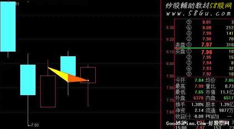 【0】:MA(L+(H-L)/2,5),CIRCLEDOT,COLORMAGENTA; 【1】:DRAWLINE(CURRBARSCOUNT=3,【0】,CURRBARSCOUNT=2,【0】,0),COLORYELLOW,LINETHICK2; 【2】:DRAWLINE(CURRBARSCOUNT=2,【0】,CURRBARSCOUNT=1,【0】,0),COLORRED,LINETHICK2; 【3】:DRAWLINE(CURRBARSCOUNT=3,【0】,CURRBARSCOUNT=1,【0】,0),COLORRED,LINETHICK2; DRAWBAND(【1】,RGB(155,50,50),【3】,RGB(250,250,0)); DRAWBAND(【2】,RGB(100,50,50),【3】,RGB(250,100,0)); 【4】:=REF(【0】,1); DRAWTEXT(【0】<【4】 AND 【2】<【3】,【2】,'转强'),COLOR33FFCC; DRAWTEXT(【0】<【4】 AND 【1】>【3】,【2】,'转弱'),COLOR33FFCC;