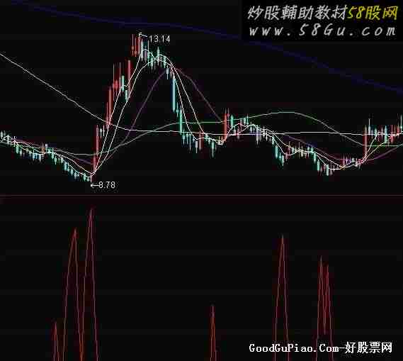 VAR1:=REF(LOW,1); VAR2:=SMA(ABS(LOW-VAR1),13,1)/SMA(MAX(LOW-VAR1,0),13,1)*100; VAR3:=EMA(IF(CLOSE*1.2,VAR2*13,VAR2/13),13); VAR4:=LLV(LOW,34); VAR5:=HHV(VAR3,34); VAR6:=IF(LLV(LOW,55),1,0); VAR7:=EMA(IF(LOW<=VAR4,(VAR3+VAR5*2)/2,0),3)/618*VAR6; XL1:=MA(LOW,2)*0.96; XL2:=MA(LOW,26)*0.85; XL3:=REF(XL1,1)<XL2 AND REF(XL1,1)<XL1 AND REF(XL1,1)<REF(XL1,2); 启动:IF(XL3,0,VAR7*3),COLORRED; XG:启动>25;