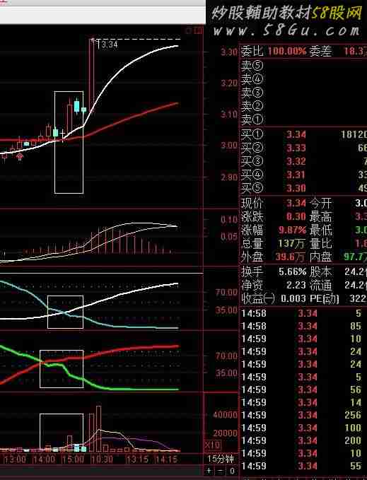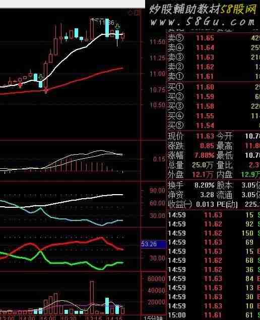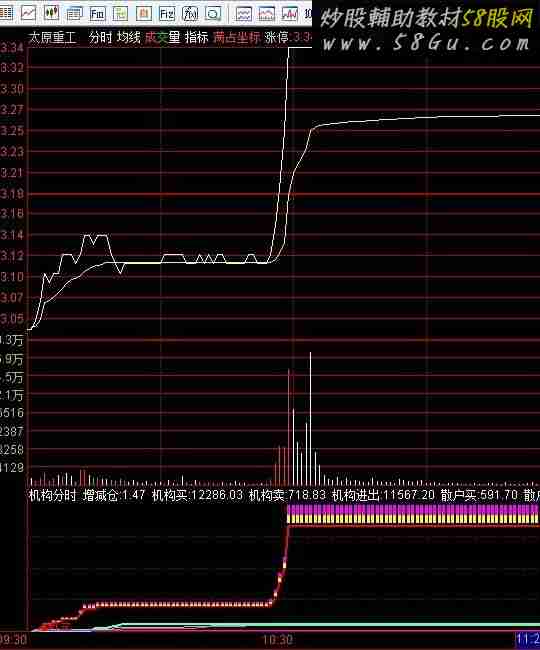 近期读了和使用一个老师的机构分时附图指标的领悟。分时机构增仓要大于0.3左右分时主图的价格线要在均价线上平稳上行 涨幅在4%以下。量比大于2.再配合15分自用的四个指标刚刚金叉放量。日线也是多头趋势。这样的条件买进去绝对不会冲高回落。当日获利可观。有使用心得的可以与我交流。A1:=SUM(IF(CLOSE>REF(CLOSE,1),VOL/CAPITAL*100,IF(CLOSE<REF(CLOSE,1),-VOL/CAPITAL*100,0)),0);成交额:=V*C/100,NODRAW;{万元}A2:=SUM((IF(((成交额/8>20) AND (CLOSE>(REF(CLOSE,1)))),成交额,0)),0);A3:=SUM((IF(((成交额/8>20) AND (CLOSE<(REF(CLOSE,1)))),成交额,0)),0);A4:=SUM((IF(((成交额/8<20) AND (CLOSE>(REF(CLOSE,1)))),成交额,0)),0);A5:=SUM((IF(((成交额/8<20) AND (CLOSE<(REF(CLOSE,1)))),成交额,0)),0);A6:=((A2+A3)+A4)+A5;A7:=IF((ISLASTBAR),((100*A2)/A6),0);A8:=IF((ISLASTBAR),((100*A3)/A6),0);A9:=IF((ISLASTBAR),((100*A4)/A6),0);A10:=IF((ISLASTBAR),((100*A5)/A6),0);增减仓%:A1;机构买:(A2),LINETHICK6,COLORRED;机构卖:(A3),LINETHICK6,COLORFFFF55;机构进出:机构买-机构卖,NODRAW;散户买:(A4),COLOR5555FF;{细红线}散户卖:(A5),COLOR55FF55;{细绿线}强势:((100*A2)/A6>50);STICKLINE(强势,机构买*1.02,机构买*1.1,1,0),COLORYELLOW;拉升:((100*A2)/A6-(100*A3)/A6)>18 AND (100*A2)/A6-(100*A5)/A6>18;STICKLINE(拉升,机构买*1.1,机构买*1.2,1,0),COLORFF00FF;DRAWTEXT(ISLASTBAR=1,机构买*0.95,'●机构买'),LINETHICK2,COLORRED;DRAWTEXT(ISLASTBAR=1,机构卖*0.95,'○机构卖'),LINETHICK2,COLORFFFF55;DRAWTEXT(机构进出>0 AND REF(机构进出,1)<=0,机构买*1.02,'●机买'),COLORRED;DRAWTEXT(机构进出<0 AND REF(机构进出,1)>=0,机构买*0.98,'○机卖'),COLORFFFF55;