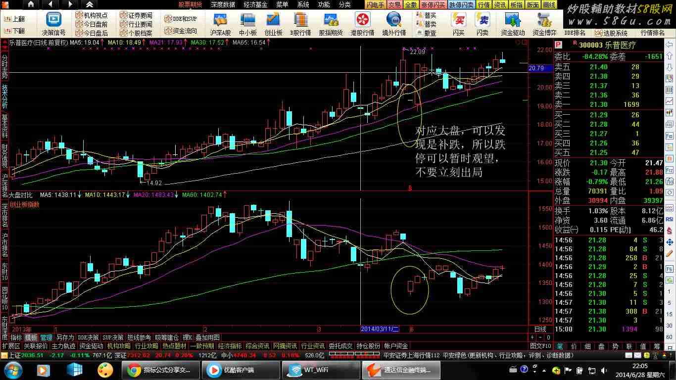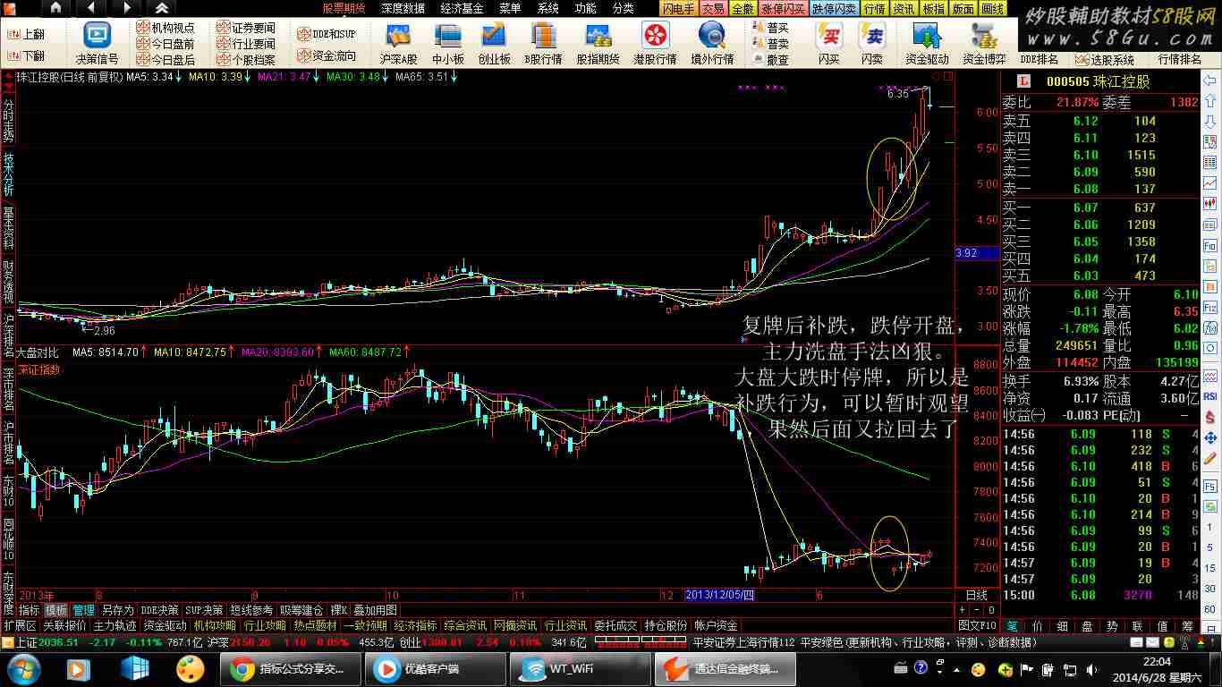 大盘大势对于炒股成败具有决定性的重要意义。 在大盘大势的配合下,股票投资者所有操盘动作的展开,都极容易达到目的;相反,如果大盘背景不配合,逆大势展开股市交易活动,成功的可能性将大大降低。受追涨杀跌的从众心理的影响,股票市场中的“羊群效应”,很容易将执拗的投资者吞没。所以,明智的交易者总是选择大盘大势对自己最有利的时刻才展开行动。所谓“顺势则昌,逆势则亡”,就是这个道理。 所以发个大盘作为副图的对比指标,希望大家可以喜欢,包含创业板与中小板。 我是最近才体会到大盘的重要性。6月16日买入珠江控股,6月20日早上跌停,一个朋友果断加我加仓。珠江控股当天是对前三天跌势的补跌果然大赚了一笔。