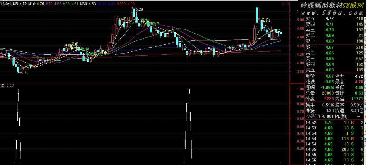 任何一款指标不能单独的使用,这款指标成功率高,下面是贴图我的指标都来源于理想,如果有侵犯了作者的权利,谨请原谅,如果有必要也可以删除,我只是上传一些我认为可以操作的指标。小散不容易 A3:=REF(CLOSE, 1.000);A4:=SMA(MAX((CLOSE - A3),0), 8, 1) / SMA(ABS((CLOSE - A3)), 8.000, 1) * 100;A5:=SMA(MAX((CLOSE - A3),0), 55, 1) / SMA(ABS((CLOSE - A3)), 55.000, 1) * 100;超短线2:=(((A4<= 20) AND (A5 <= 49)) * 1);超卖1:=IF(SMA(MAX(CLOSE-REF(CLOSE,2),0),7,1)/SMA(ABS(CLOSE- REF(CLOSE,2)),7,1)*100<12,0.5,0);超卖2:=IF(SMA(MAX(CLOSE-REF(CLOSE,1),0),7,1)/SMA(ABS(CLOSE-REF(CLOSE,1)),7,1)*100 <12,0.5,0);买特灵:超短线2 OR 超卖1 OR 超卖2;   |