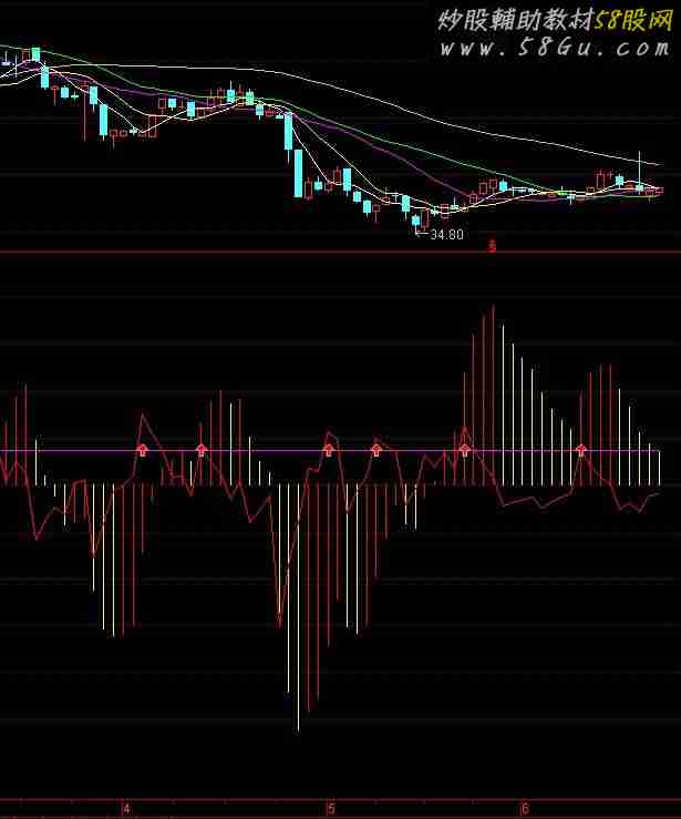 DIF1:=EMA(DCLOSE,12)-EMA(DCLOSE,26); DEA1:=EMA(DIF1,9); {柱状线} AAA1:=(DIF1-DEA1)*2*60; AAA上:IF(AAA1>REF(AAA1,1),AAA1,DRAWNULL), STICK,COLORRED,LINETHICK1; AAA下:IF(AAA1<REF(AAA1,1),AAA1,DRAWNULL),STICK,COLORYELLOW,LINETHICK1; 买入线:15; 房子:AAA1-REF(AAA1,1),COLORRED; DRAWICON(CROSS(房子,买入线),买入线,1); |