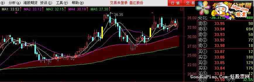 STICKLINE( MA(CLOSE,60)>MA(CLOSE,120),MA(CLOSE,60),MA(CLOSE,120),8,0),COLOR000044; STICKLINE( MA(CLOSE,60)<MA(CLOSE,120),MA(CLOSE,60),MA(CLOSE,120),8,0),COLOR004400; DRAWKLINE(H,O,L,C);MA1:MA(CLOSE,5); MA2:MA(CLOSE,10); MA3:MA(CLOSE,20); MA4:MA(CLOSE,60),COLORMAGENTA; MA5:MA(CLOSE,120),COLORGREEN; MA6:=MA(CLOSE,250); C2:=REF(C,1); 涨停:=IF((C-C2)*100/C2>=(10-0.01*100/C2),1,0); STICKLINE(涨停,OPEN,CLOSE,2,0),COLORYELLOW; STICKLINE(涨停,H,L,0,0),COLORYELLOW; 跌停:=IF((C2-C)*100/C2>=(10-0.01*100/C2),1,0); STICKLINE(跌停,OPEN,CLOSE,2,0),COLORGREEN; STICKLINE(跌停,H,L,0,1),COLORGREEN; DRAWICON(CROSS(MA1,MA2),MA1,1); STICKLINE( C<MA4,H,L,0,0),COLOR777777; STICKLINE( C<MA4,O,C,2.7,1),COLOR777777;