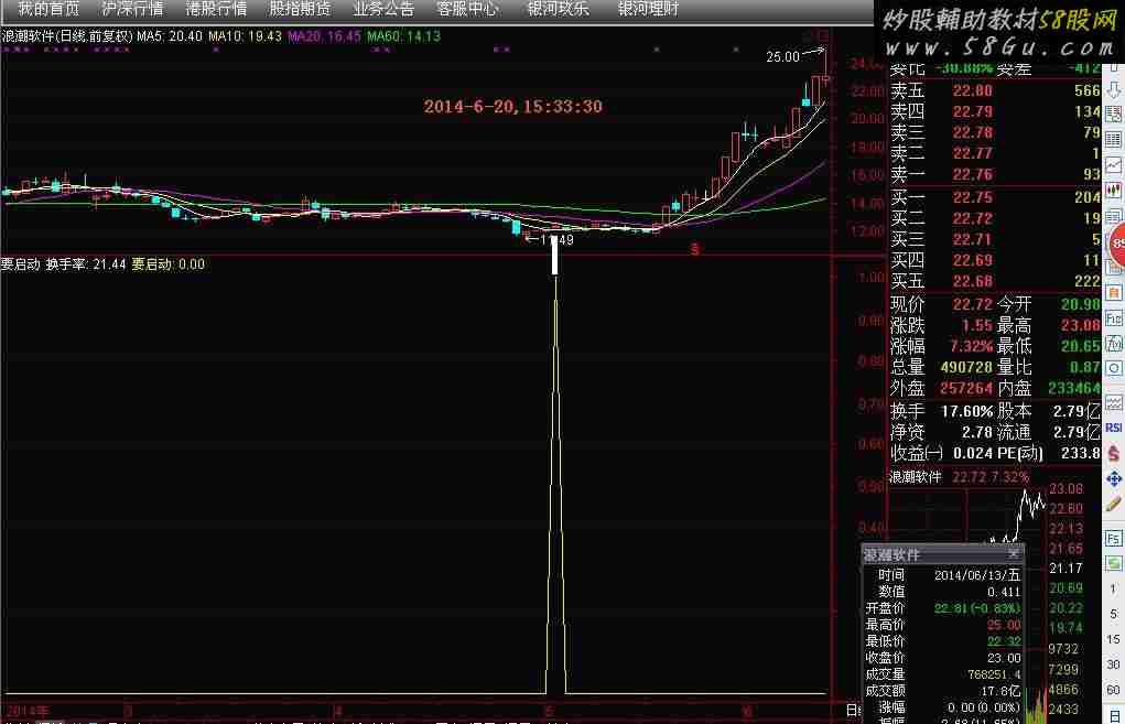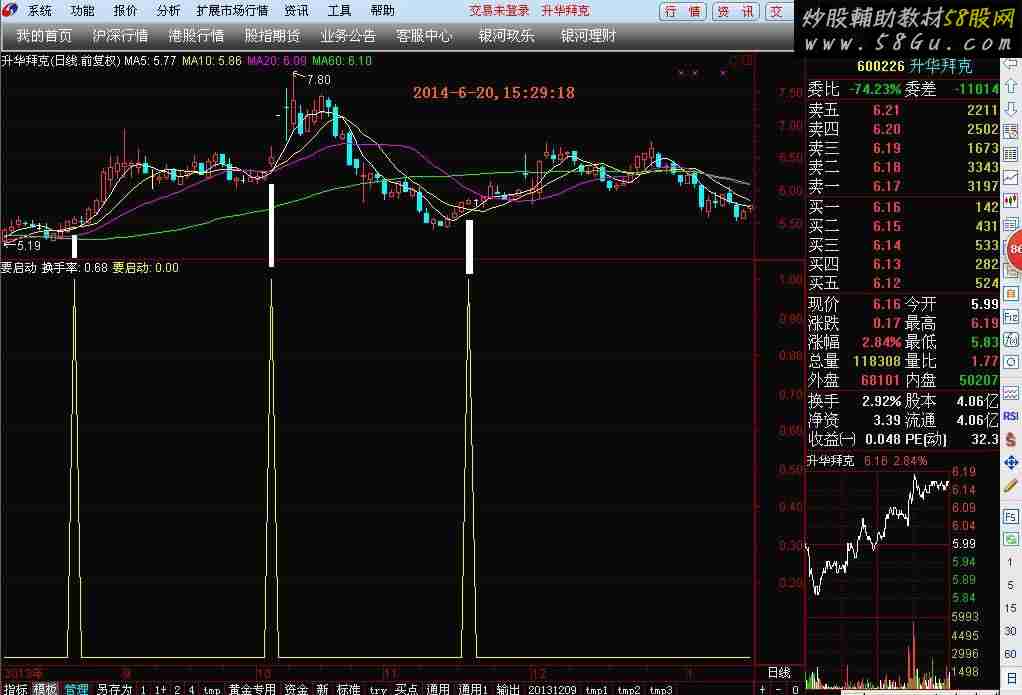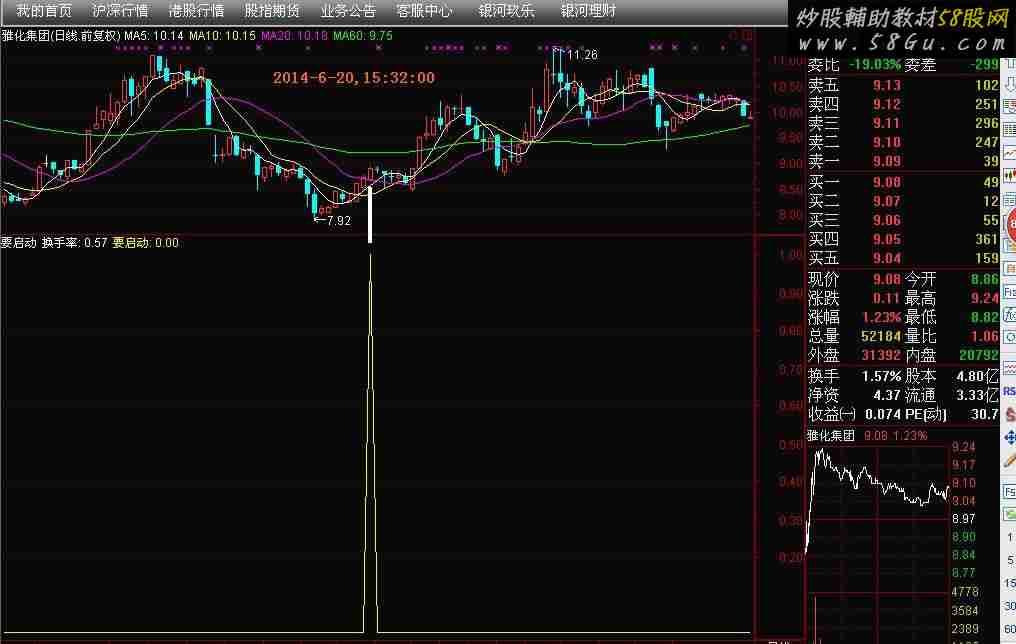 前几天在网上看到有关一支个股的上涨介绍,文章具体介绍了该只个股在涨停前几个交易日每日都有上千万资金流入,而且都相应地有小幅度上涨。我认为该文章无意间说出了某些个股在上涨前主力资金根据介入的实际情况,我据此.编写了该“要启动”指标公式。感觉非常不错,用于短线操作能够获得很好的收益。