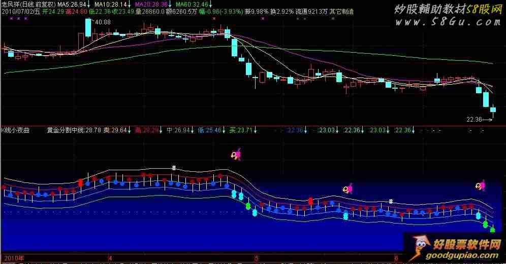 LC:=REF(C,1); MA5:=MA(C,5); K:=BARSLAST(CURRBARSCOUNT=250); 高1:=CONST(IF(ISLASTBAR=1,HHV(H,K),0)); 低0:=CONST(IF(ISLASTBAR=1,LLV(L,K),0)),COLOR00FF00; KJ:=高1-低0; GD4:=IF(CURRBARSCOUNT<=250/2,高1,DRAWNULL); 顶:=REFDATE(高1,DATE),COLORFF8800; 高压:=IF(1=1,低0+KJ*0.873,DRAWNULL),COLOR0000FF,NODRAW; 压力:=IF(1=1,低0+KJ*0.809,DRAWNULL),COLORFF00FF,NODRAW; 上中:=IF(1=1,低0+KJ*0.618,DRAWNULL),COLORMAGENTA,NODRAW; 中线:=IF(1=1,低0+KJ/2,DRAWNULL),COLORCCCCCC,POINTDOT; 下中:=IF(1=1,低0+KJ*0.382,DRAWNULL),COLORMAGENTA,NODRAW; 支撑:=IF(1=1,低0+KJ*0.191,DRAWNULL),COLORFFAA00,NODRAW; 超跌:=IF(1=1,低0+KJ*0.127,DRAWNULL),COLORFFAA00,; {该行设置背景色} STICKLINE(1=1,GD4,高压,10,0),COLOR110000; STICKLINE(1=1,高压,压力,10,0),COLOR330000; STICKLINE(1=1,压力,上中,10,0),COLOR550000; STICKLINE(1=1,上中,下中,10,0),COLOR770000; STICKLINE(1=1,下中,支撑,10,0),COLOR990000; STICKLINE(1=1,支撑,低0,10,0),COLORAA0000; 黄金分割中线:IF(1=1,低0+KJ/2,DRAWNULL),COLORCCCCCC,POINTDOT; 卖:MA5*1.1,LINETHICK1,COLOR00CCFF; 高:MA5*1.05,LINETHICK1,COLOR0000FF; 中:MA5,LINETHICK1,COLOR999999; 低:MA5*0.945,LINETHICK1,COLORFFAA00; 买:MA5*0.88,LINETHICK1,COLOR00FF00; STICKLINE(C>LC AND C>O,H,H*0.92,0,0),COLORFFFFFF; STICKLINE(C>LC AND C>O AND C>高,H,H*0.9,0,0),COLORFFFFFF; STICKLINE(1=1,H,L,0,0),COLORFFFFFF; STICKLINE(C<LC AND C<O,L,L*1.08,0,0),COLORFFFFFF; STICKLINE(C<LC AND C<O AND C<低,L,L*1.1,0,0),COLORFFFFFF; IF(C>=LC AND C>O,H,DRAWNULL),POINTDOT,LINETHICK9,COLOR000099; IF(C>=LC AND C<O,L*0.98,DRAWNULL),POINTDOT,LINETHICK9,COLORFF5500; IF(C<=LC AND C<O,L,DRAWNULL),POINTDOT,LINETHICK9,COLORFF5500; IF(C<=LC AND C>O,H*0.995,DRAWNULL),POINTDOT,LINETHICK9,COLORFF5500; IF(C<=MA5*0.945,L*1.03,DRAWNULL),POINTDOT,LINETHICK9,COLORFFFF00; IF(C<=MA5*0.945,L,DRAWNULL),POINTDOT,LINETHICK9,COLORFFFF00; IF(C<=买 AND C<O,L*1.03,DRAWNULL),POINTDOT,LINETHICK9,COLOR00FF00; IF(C<=买 AND C<O,L,DRAWNULL),POINTDOT,LINETHICK7,COLOR00FA00; IF(C>=MA5*1.05 AND L>MA5*0.945,H*0.97,DRAWNULL),POINTDOT,LINETHICK9,COLOR0000FF; IF(C>=MA5*1.05 AND L>MA5*0.945,H,DRAWNULL),POINTDOT,LINETHICK9,COLOR0000FF; IF(C>=MA5*1.1,H*0.97,DRAWNULL),POINTDOT,LINETHICK9,COLOR00CCFF; IF(C>=MA5*1.1,H,DRAWNULL),POINTDOT,LINETHICK9,COLOR00CCFF; DRAWICON(FILTER(C<MA5*0.945,10),H*1.235,26); DRAWTEXT(FILTER(C<MA5*0.945,10),H*1.28,'《'),COLORCC00FF; {DRAWTEXT(FILTER(C<MA5*0.945,10),H*1.22,'◆'),COLOR00CCFF;} DRAWTEXT(FILTER(C<MA5*0.945,10),H*1.25,'〓'),COLORCC00FF; DRAWTEXT(FILTER(C<MA5*0.945,10),H*1.25,'◆'),COLORCC00FF; DRAWTEXT(FILTER(C<MA5*0.945,10),H*1.22,'《'),COLORCC00FF; {DRAWTEXT(FILTER(C<MA5*0.945,10),H*1.225,'▲●'),COLOR00CCFF;} IF(FILTER(C<MA5*0.945,10),H*1.28,DRAWNULL),POINTDOT,LINETHICK4,COLOR000000; IF(FILTER(C<MA5*0.945,10),H*1.225,DRAWNULL),POINTDOT,LINETHICK5,COLOR000000; IF(FILTER(C<MA5*0.945,10),H*1.25,DRAWNULL),POINTDOT,LINETHICK9,COLOR00CCFF; IF(FILTER(C<MA5*0.945,10),H*1.25,DRAWNULL),POINTDOT,LINETHICK5,COLORAA0000; IF(FILTER(C<MA5*0.945,10),H*1.25,DRAWNULL),POINTDOT,LINETHICK3,COLOR00CCFF; DRAWTEXT(FILTER(C<MA5,30),卖,'#'),COLORFFFFFF;
