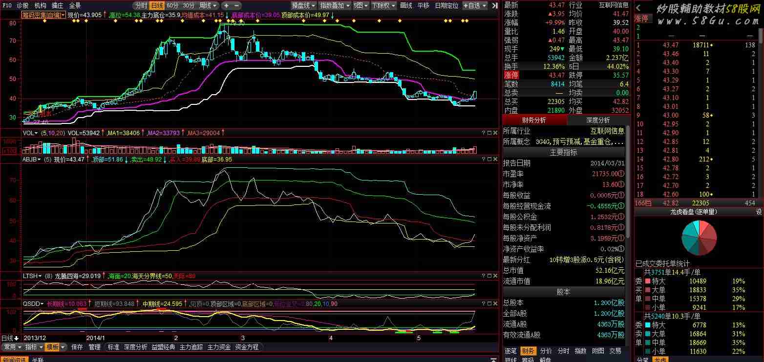 偶得一朋友给我看了一下益盟操盘手的按部就班公式,仿制了它,其实就是筹码公式 筹码按部就班: 1、白线为当日收盘价,黄线为底部价格,红线为买入价格,绿线为卖出价格,蓝线为顶部价格。 2、白线上穿黄线说明股票底部形态已初步形成,可能目前股价已经处于最低价,但不建议建仓,可以关注。 3、白线上穿红线说明股票底部已经确立,股价已经进入可以建仓阶段,突破点就是买入点,开始建仓。 4、白线上穿绿线说明股价已经开始拉升,此时已经不宜继续加仓,而应该持股待涨,随时准备卖出。 5、白线上穿蓝线说明股价已经进入顶部区域,此时风险较大,随时准备离场。 6、白线向下击穿蓝线说明顶部已经基本形成,开始逐步减磅,获利丰厚者可以考虑清仓。 7、白线向下击穿绿线,说明股价顶部已经确认,此时进一步卖出手中剩余仓位,清仓离场。 8、白线向下击穿红线或者黄线均说明股价仍然处于弱势,继续观望,等待时机。 9、各线条数值亦可作为阻力位,支撑位,目标位来看待。 现价:C;顶部:COST(99),COLORLIBLUE;底部:COST(1),COLORYELLOW;集中:=(COST(95)-COST(5))/(COST(95)+COST(5))*100;集中1:=100-集中;均值:=(集中+集中1)/2;均值成本:COST(均值),DOTLINE;买入:COST(集中),COLORRED;卖出:COST(集中1),COLORGREEN;    |