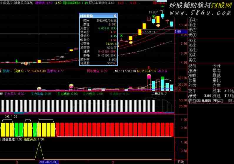 开宗名义申明是老指标比一些不作说明冒发的品格高不知多少倍,值得学习 绝密量能买点 CV:=CLOSE;BBIBOLL:=(MA(CV,3)+MA(CV,6)+MA(CV,12)+MA(CV,24))/4;UPR:=BBIBOLL+6*STD(BBIBOLL,11);QJJ:=VOL/((HIGH-LOW)*2-ABS(CLOSE-OPEN));XVL:=(IF(CLOSE>OPEN,QJJ*(HIGH-LOW),IF(CLOSE<OPEN,QJJ*(HIGH-OPEN+CLOSE-LOW),VOL/2))+IF(CLOSE>OPEN,0-QJJ*(HIGH-CLOSE+OPEN-LOW),IF(CLOSE<OPEN,0-QJJ*(HIGH-LOW),0-VOL/2)));HSL:=(XVL/3)/1.15;攻击:=((HSL*0.55+(REF(HSL,1)*0.33))+(REF(HSL,2)*0.22));LLJX:=EMA(攻击,3);B1:=IF(SUM(LLJX,1)>REF(MA(SUM(LLJX,1),1),1),SUM(LLJX,1),DRAWNULL);B2:=IF(SUM(LLJX,2)>REF(MA(SUM(LLJX,2),1),1),SUM(LLJX,2),DRAWNULL);B3:=IF(SUM(LLJX,3)>REF(MA(SUM(LLJX,3),1),1),SUM(LLJX,3),DRAWNULL);B4:=IF(SUM(LLJX,4)>REF(MA(SUM(LLJX,4),1),1),SUM(LLJX,4),DRAWNULL);B5:=IF(SUM(LLJX,5)>REF(MA(SUM(LLJX,5),1),1),SUM(LLJX,5),DRAWNULL);B6:=IF(SUM(LLJX,6)>REF(MA(SUM(LLJX,6),1),1),SUM(LLJX,6),DRAWNULL);B7:=IF(SUM(LLJX,7)>REF(MA(SUM(LLJX,7),1),1),SUM(LLJX,7),DRAWNULL);B8:=IF(SUM(LLJX,8)>REF(MA(SUM(LLJX,8),1),1),SUM(LLJX,8),DRAWNULL);B9:=IF(SUM(LLJX,9)>REF(MA(SUM(LLJX,9),1),1),SUM(LLJX,9),DRAWNULL);B10:=IF(SUM(LLJX,10)>REF(MA(SUM(LLJX,10),1),1),SUM(LLJX,10),DRAWNULL);绝密量能:B1 AND B2 AND B3 AND B4 AND B5 AND B6 AND B7 AND B8 AND B9 AND B10 AND (CLOSE-OPEN)>=(UPR-BBIBOLL) AND V/REF(V,1)>=1.9;A1:=EMA(C,3);A5:=EMA(C,20);绝密买点:绝密量能=1 AND CROSS(A1,A5) AND C>O AND C>REF(C,1) AND C/REF(C,1)>=1.018,COLOR00FFFF;  |