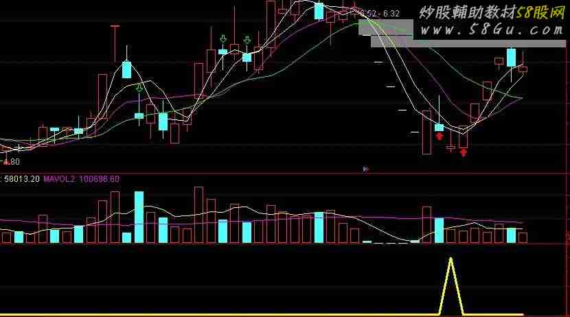 AA:=H>MAX(C,O)AND L<MIN(C,O)AND (ABS(C-O)/O<0.005 OR ABS(C-O)<0.05) AND (O-REF(C,1))/REF(C,1)*100<-3; BB:=C>=O; CC:=AA AND BB; XG: CC COLORYELLOW,LINETHICK3;  |