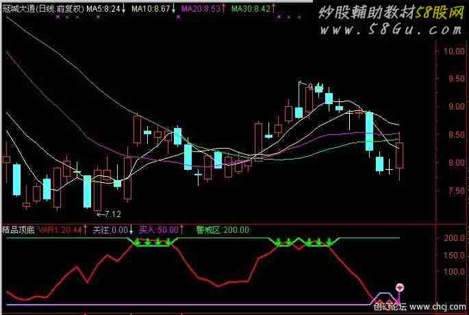 VAR1:8*SMA((CLOSE-LLV(LOW,8))/(HHV(HIGH,8)-LLV(LOW,8))*100,5,1)- 6*SMA(SMA((CLOSE-LLV(LOW,8))/(HHV(HIGH,8)-LLV(LOW,8))*100,5,1),3.2,1),COLORRED,LINETHICK2; VAR2:=8,COLORGREEN,LINETHICK0; 关注:IF(VAR1<=8,35,0),COLORFF6EC7,LINETHICK2; 买入:IF(CROSS(VAR1,VAR2),50,0),STICK,LINETHICK2; DRAWICON(CROSS(VAR1,VAR2),49,23); DRAWICON(VAR1<=10,5,1); 警戒区:IF((VAR1>170),175,200),COLORGREEN,LINETHICK2; DRAWICON(VAR1>=170,185,2); |