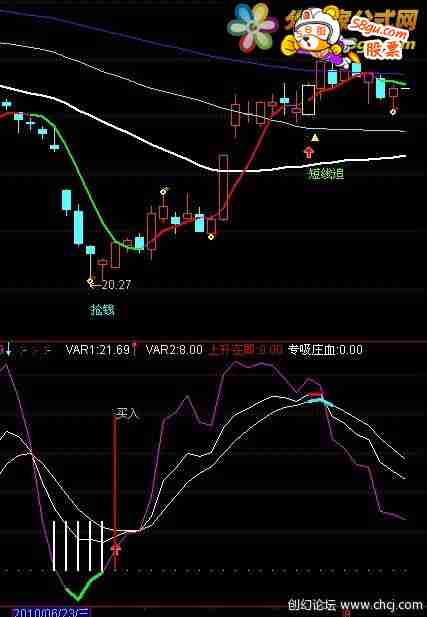 RSV:=(CLOSE-LLV(LOW,9))/(HHV(HIGH,9)-LLV(LOW,9))*100,LINETHICK2; K:SMA(RSV,3,1); D:SMA(K,3,1); J:3*K-2*D,COLORFF00FF; IF(J<0,J,DRAWNULL),COLORGREEN,LINETHICK3; IF(K>90,K,DRAWNULL),COLOR0000FF,LINETHICK3; IF(D>85,D,DRAWNULL),COLORFFFF11,LINETHICK3; DRAWICON(CROSS(J,1),J,1); DRAWICON(K>80 AND D>80 AND CROSS(D,K),D,2); N:=5; VAR1:4*SMA((CLOSE-LLV(LOW,N))/(HHV(HIGH,N)-LLV(LOW,N))*100,5,1)- 3*SMA(SMA((CLOSE-LLV(LOW,N))/(HHV(HIGH,N)-LLV(LOW,N))*100,5,1),3.2,1),COLORYELLOW,LINETHICK0; VAR2:8,COLORGREEN,LINETHICK0; 上升在即: IF(CROSS(VAR1,VAR2),80,0),STICK,COLOR0000CC,LINETHICK2; 专吸庄血: IF(VAR1<=8,25,0),STICK,COLORWHITE,LINETHICK2; DRAWTEXT(CROSS(VAR1,VAR2),80,'买入'),COLOR70DB93 ; |